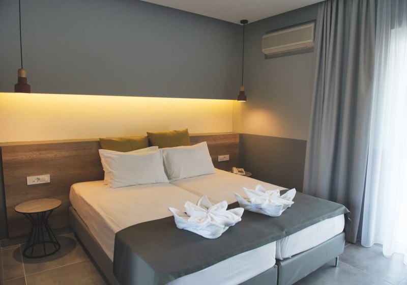 Ihr wohnt in Zimmern mit klaren Komfortmerkmalen: Klimaanlage, 32-Zoll-TV, WLAN, Telefon, Minikühlschrank und ein Mietsafe. Der private Außenbereich ist als Balkon oder Terrasse angelegt. Das Bad ist mit Dusche, WC und Föhn ausgestattet – funktional, sauber, ohne Umwege auf das Wesentliche ausgerichtet.