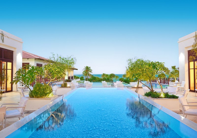 - Pool-Trio: Drei Salzwasserpools und separates Kinderbecken für Familien.