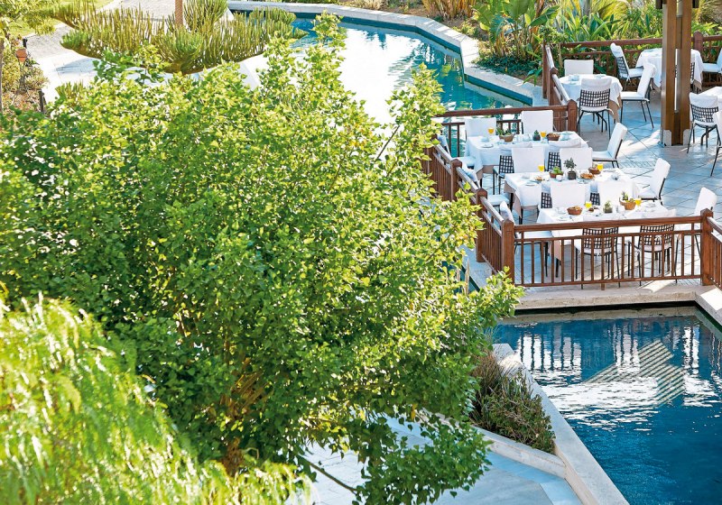 Kulinarisch habt Ihr die Wahl zwischen dem Hauptrestaurant The Lagoon mit Buffet und Showcooking sowie À-la-carte-Optionen: italienisch, griechisch, panasiatisch und Grill. Ergänzend locken fünf Bars – von der Lobbybar über das 1930's Bar Restaurant bis zur Garden Poolbar, Poolbar und Strandbar – mit passenden Drinks für jede Tageszeit.