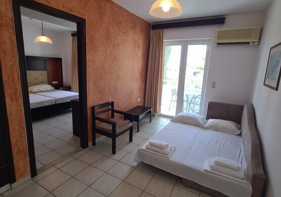 Für mehr Raum greift Ihr zu Familienzimmern (ca. 38 m²) oder Appartements (ca. 50 m²) mit Kitchenette; in den Appartements ergänzt ein separater Wohnraum den Schlafbereich, der Boden ist gefliest. Doppel-/Einzelzimmer starten bei rund 20 m². In bestimmten Zimmern ist ein Klapp-Extrabett vorgesehen.