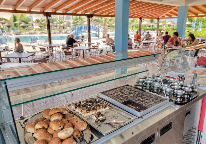 Im Restaurant erwartet Euch eine unkomplizierte Mischung aus Buffet- und Live-Kochmomenten mit Auswahl für unterschiedliche Vorlieben. Tagsüber greift Ihr zu Snacks, abends rundet Ihr an der Bar den Tag ab. Die Poolbar liefert kurze Wege zwischen Sonnenliege und Erfrischung.