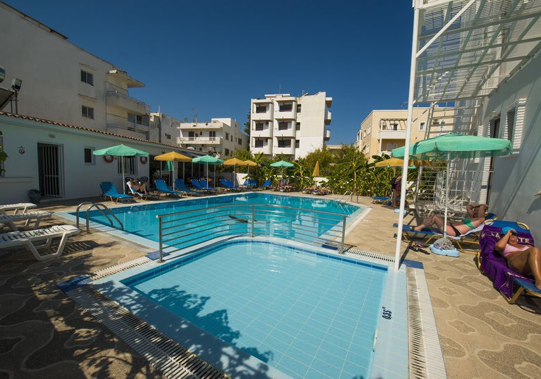 Die Infrastruktur ist klar strukturiert: Rezeption und Lobby, Aufzug, kostenloses WLAN, Safe gegen Gebühr, TV-Raum und eine Sonnenterrasse bilden den Rahmen. Draußen erwarten Euch der Süßwasser-Außenpool mit integriertem Kinderbecken, kostenlose Liegen und Schirme, Poolbar, Garten und Terrasse. Zusätzlich stehen Gepäckaufbewahrung, Minimarkt, Zimmerservice und Mietwagenverleih zur Verfügung.