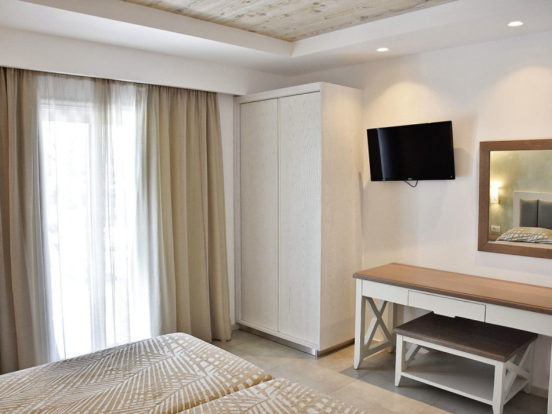 • Klimaanlage • Kühlschrank • Haartrockner • Minibar • Safe (gegen Gebühr) • Fernseher • WiFi (kostenfrei) • Balkon oder Terrasse • Gartenblick • Balkon (je nach Zimmerkategorie) • Kochnische • Mikrowelle • Meerblick (je nach Zimmerkategorie) • Schlafsofa • Kaffee-/Teezubereiter • Terrasse
