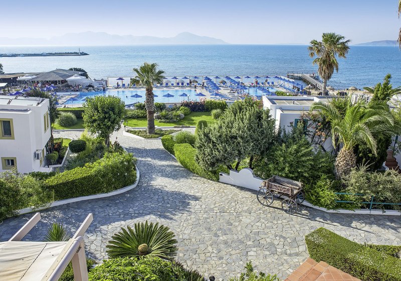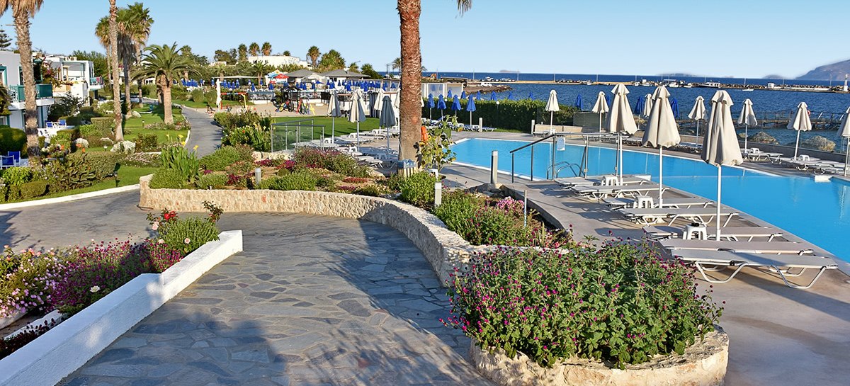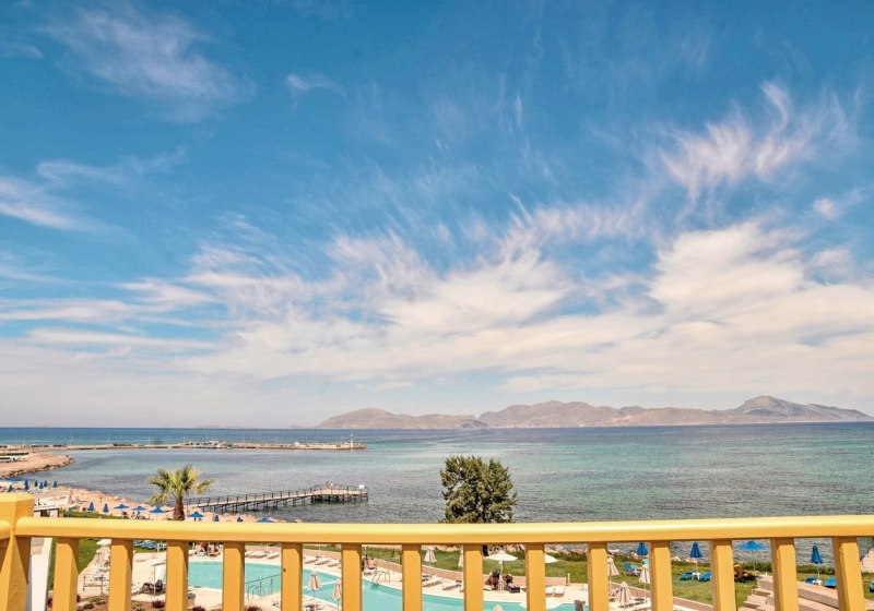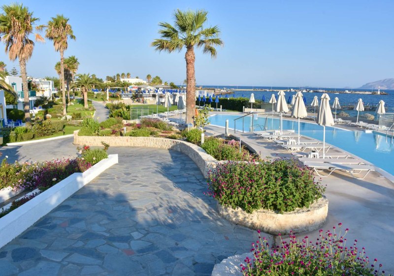 Im Mastichari Bay Hotel & Family Suites wohnt Ihr direkt am Meer, mit zwei geschützten Badebuchten vor der Tür und dem weiten Blick über die Ägäis. Die Anlage wirkt aufgeräumt und einladend: Wege führen durch gepflegte Bereiche zu Pools, Terrassen und dem Strand. Familien schätzen den Kinderpool und kurze Distanzen, Paare das entspannte Tempo und die ruhigen Zonen am Relaxpool. Highlight: Direkte Strandlage mit zwei Badebuchten und kleinen Stegen für bequemen Meerzugang.