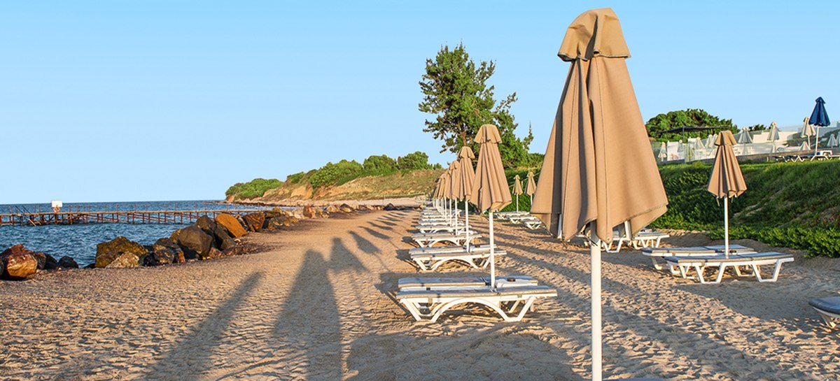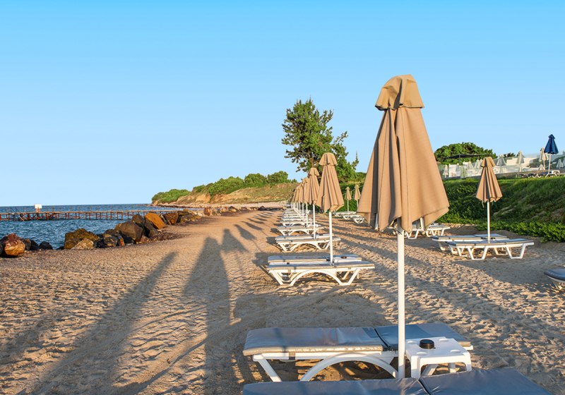 - Am Strand: Liegen und Schirme auch am Strand bequem inklusive.