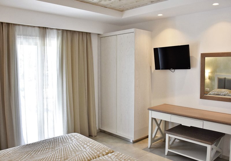 Ihr wohnt in hellen Zimmern mit Balkon oder Terrasse, wahlweise mit Garten- oder Meerblick. Zur Ausstattung zählen Dusche, Pflegeprodukte, Föhn, Telefon, Safe, WLAN, Sat-TV, individuell regulierbare Klimaanlage und Kühlschrank; auf Anfrage steht eine Tee- und Kaffeezubereitung bereit. So bringt Ihr den Tag gut gestartet und abends entspannt zu Ende. Highlight: Balkon oder Terrasse in allen Zimmern schafft privaten Außenraum.