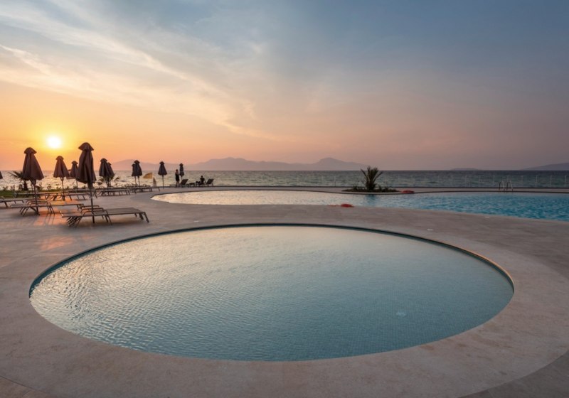Kurze Distanzen zu Mastichari, Kos-Stadt und dem Flughafen sowie die Bushaltestelle am Hotel erleichtern Eure Planung in den Ferien. Das Spa mit Sauna und Hamam setzt ruhige Akzente, während die Wassersportstation am Strand Bewegung ins Spiel bringt – strukturiert, nah und ohne Umwege.
