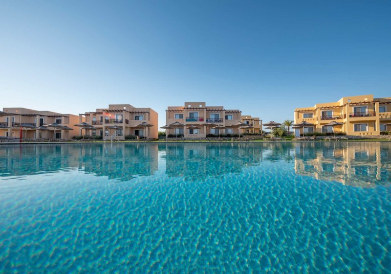 Im Horizon Beach Resort wohnt Ihr in einer weitläufigen Anlage direkt an einem flachen Sandstrand. Das Ensemble aus Haupthaus und niedrigen Bungalowgebäuden wirkt angenehm übersichtlich, die Wege führen zu mehreren Süßwasser-Poollandschaften und grünen Flächen. Familien nutzt Ihr den Miniclub und separate Kinderpools, Ruhesuchende findet Ihr am Strand oder in stilleren Gartenbereichen. Wer gern strukturiert plant, profitiert von klaren Angeboten für Sport, Unterhaltung und Kulinarik.