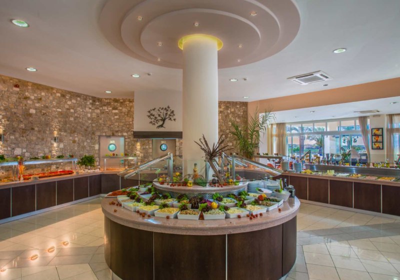 Ihr wählt zwischen zwei Hauptrestaurants und einer Taverne. Das Angebot ist auf Buffet- und Speiseraumkonzept ausgelegt und deckt Frühstück, Mittag- und Abendessen ab. Zusätzlich stehen Diätgerichte, spezielle Angebote und glutenfreie Optionen bereit. Wer tagsüber flexibel bleibt, greift zu an den Pool-/Snackbars oder an der Strand-Snackbar für kurze Pausen mit Blick aufs Meer.
