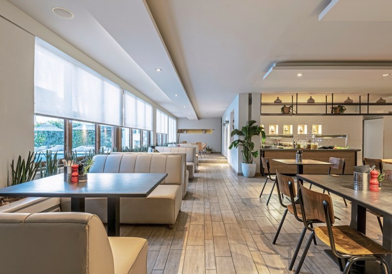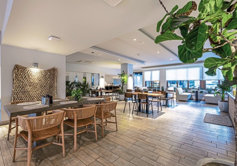 Im Hauptrestaurant esst Ihr auf Wunsch draußen: Die Außenterrasse schafft lässige Offenheit, der Blick fällt in den Hotelbereich, die Wege sind kurz. Die Küche wird als sehr gut bewertet – das spricht für verlässliche Qualität vom Frühstück bis zum Abend. Highlight: Hauptrestaurant mit Außenterrasse für entspannte, luftige Mahlzeiten.