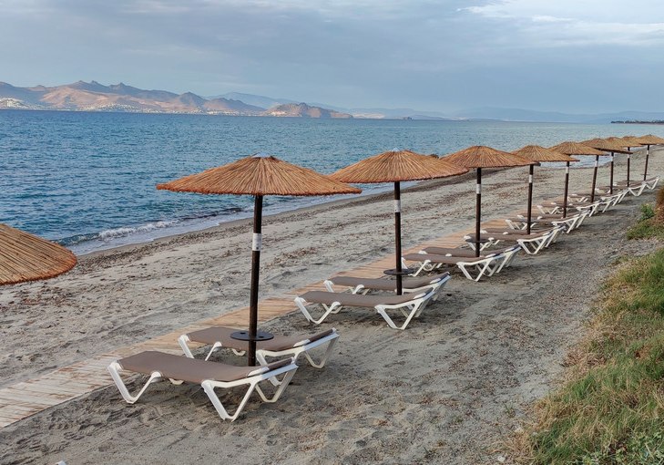 Ihr wohnt direkt am Strand, mit freiem Blick auf Meer und Küstenlinie. Tigaki erreicht Ihr nach etwa 4 Kilometern, Kos-Stadt nach rund 5 Kilometern. Praktisch: Gleich am Hoteleingang befindet sich eine Bushaltestelle, sodass Ihr Ziele auf der Insel unkompliziert ansteuert.