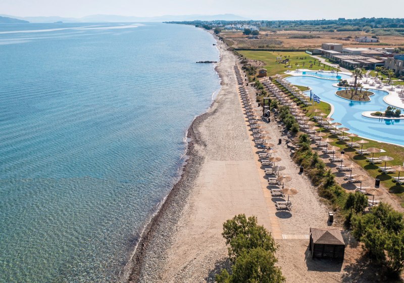 Astir Odysseus Resort & Spa empfängt Euch direkt am Sand- und Kiesstrand von Kos mit weitläufigen Wasserflächen, ruhigen Wegen und klar strukturierten Bereichen für Familien und Paare. Die Atmosphäre wirkt entspannt, die Wege sind kurz, und Ihr wechselt nahtlos zwischen Strand, Poollandschaft und Restaurant. Dank durchdachter Infrastruktur fühlt sich Euer Tag stimmig und unaufgeregt an.