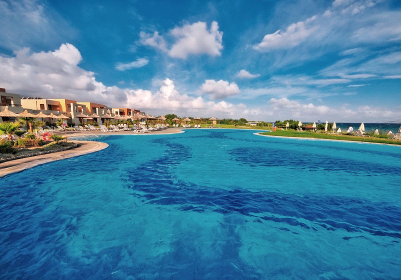 Ihr startet am Meer, wechselt zu einem der fünf Außenpools und lasst den Abend in stilvollen Restaurants ausklingen. Kinder finden eigene Bereiche mit Programm und Minidisco, während Ihr am Amphitheater oder bei Live-Musik den Tag abrundet. Highlight: Direkte Strandlage mit fünf Außenpools für abwechslungsreiche Tage.