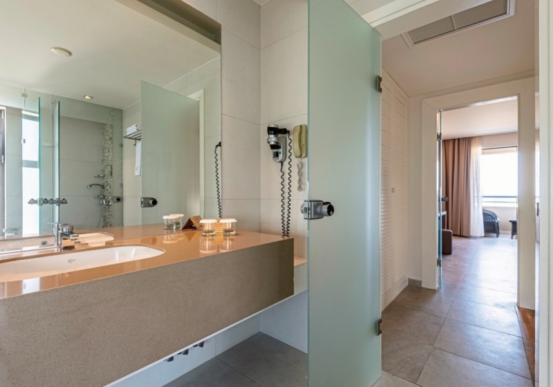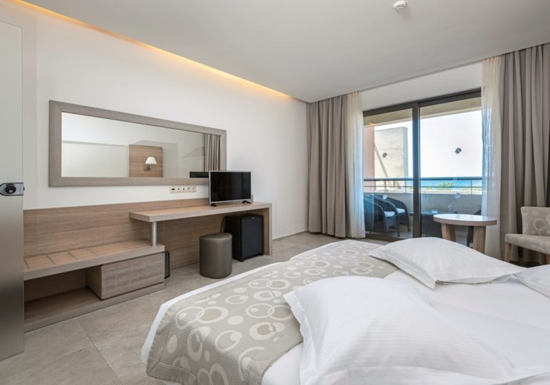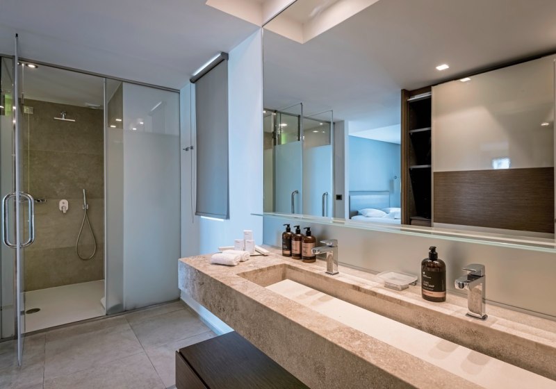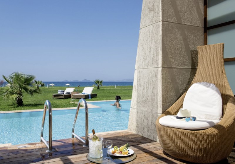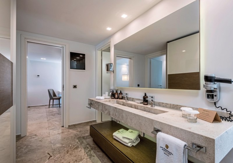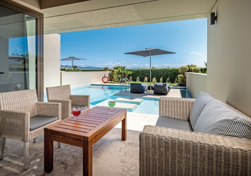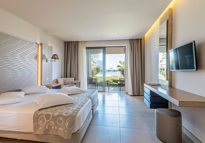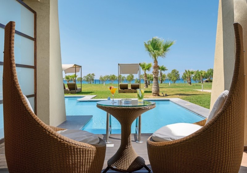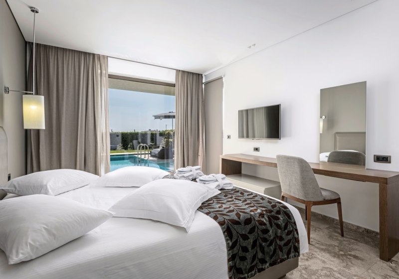 Die Auswahl reicht von Comfort-Doppelzimmern und Familienzimmern bis zu Executive Suiten. Besonders attraktiv: Seafront-Maisonetten mit Sharing-Pool, Zimmer mit privatem Hydromassage-Whirlpool oder eigenem Pool. Schallisolierung, Bademäntel und Hausschuhe ergänzen den Komfort. Highlight: Auswahl an Zimmern mit Sharing- oder Privatpool.