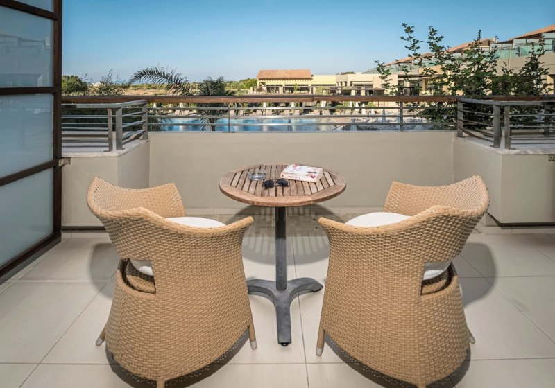 Eure Zimmer verfügen über Bad mit WC, Föhn, Sat-TV, WLAN, Minibar, Safe, Telefon und Klimaanlage. Kaffee- und Teezubereiter sowie eine Nespresso-Maschine gehören ebenso zur Ausstattung; Balkon oder Terrasse öffnen den Blick auf Garten- oder Poolbereiche, teils mit Meerbezug je nach Kategorie.