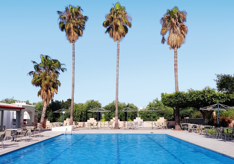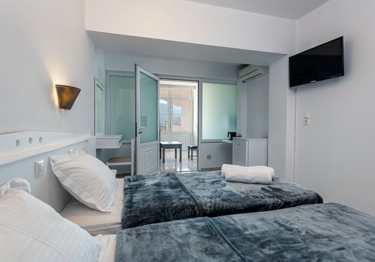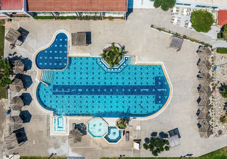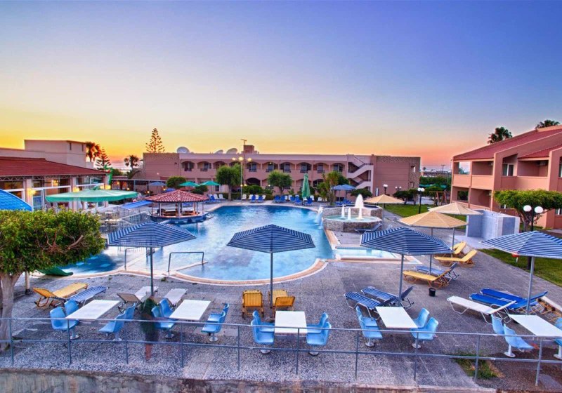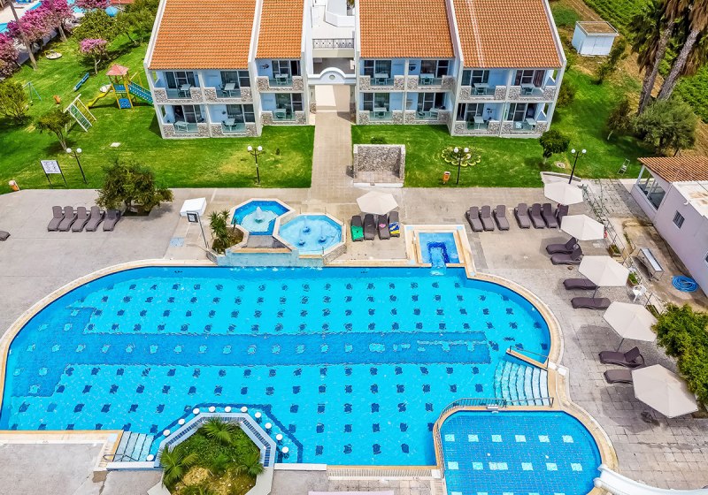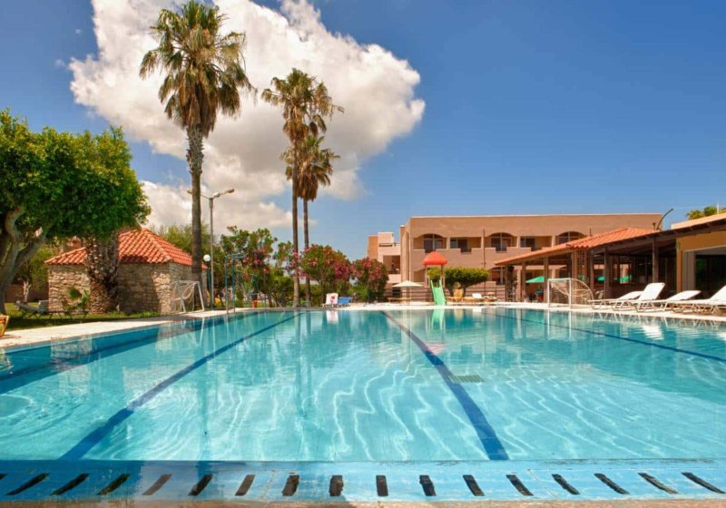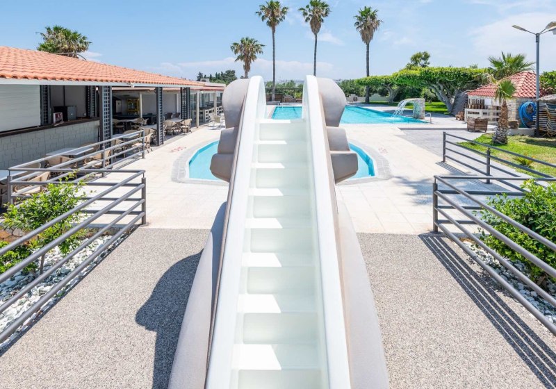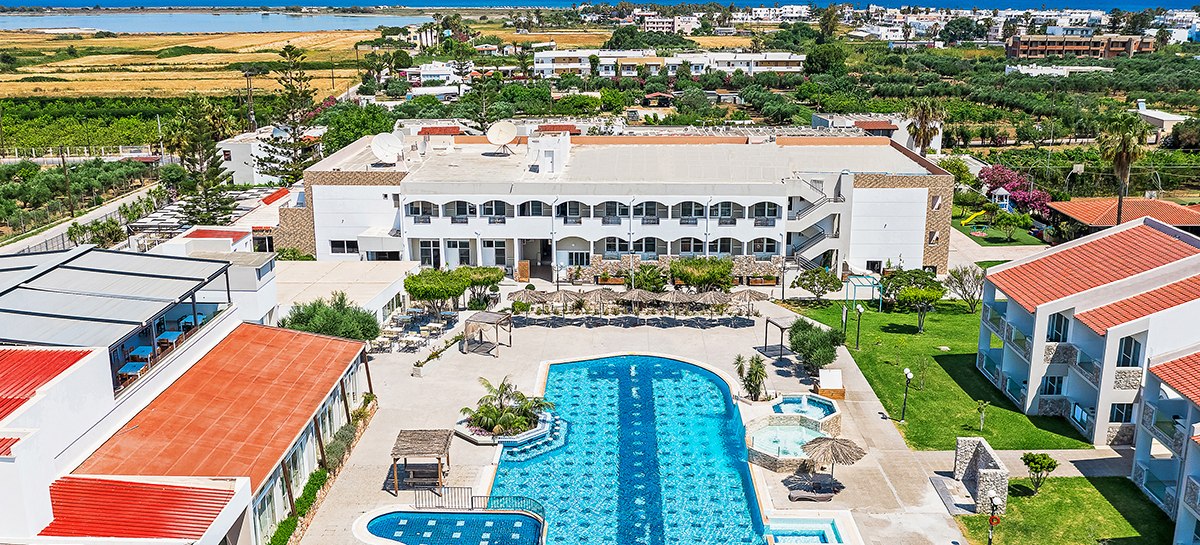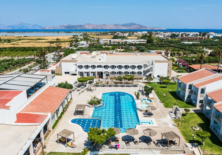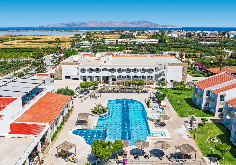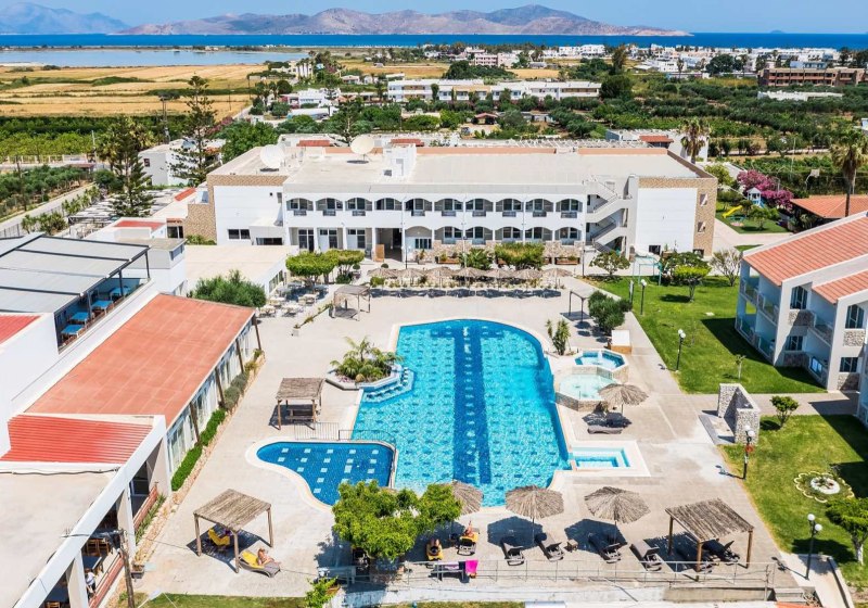 Als Strandfans erreicht Ihr den feinen Sand von Tigaki nach kurzer Strecke; der hoteleigene Shuttle nimmt Euch mit. Für Familien warten Kinderpool mit Wasserrutsche und Spielplatz, während Paare den Freiluft‑Jacuzzi und Behandlungen genießen. Kulinarisch versorgt Euch das klimatisierte Restaurant ganztägig, All‑Inclusive inklusive Snacks und Getränken schafft Planungssicherheit in den Ferien.