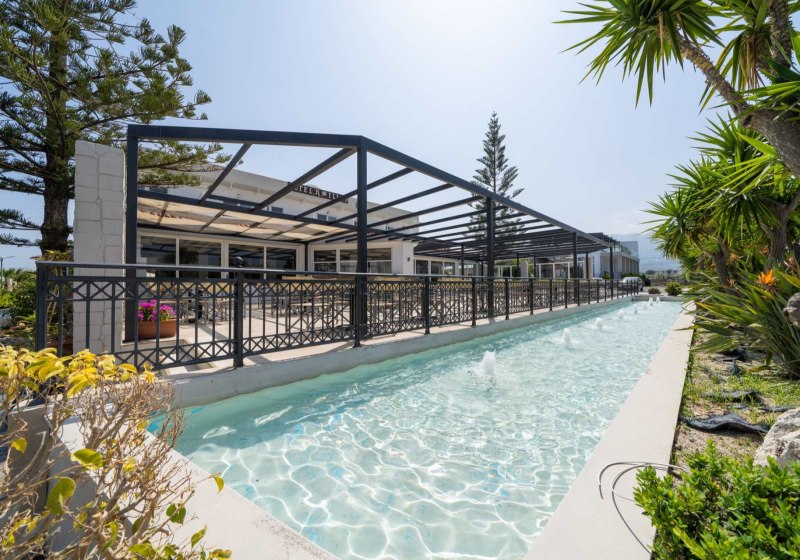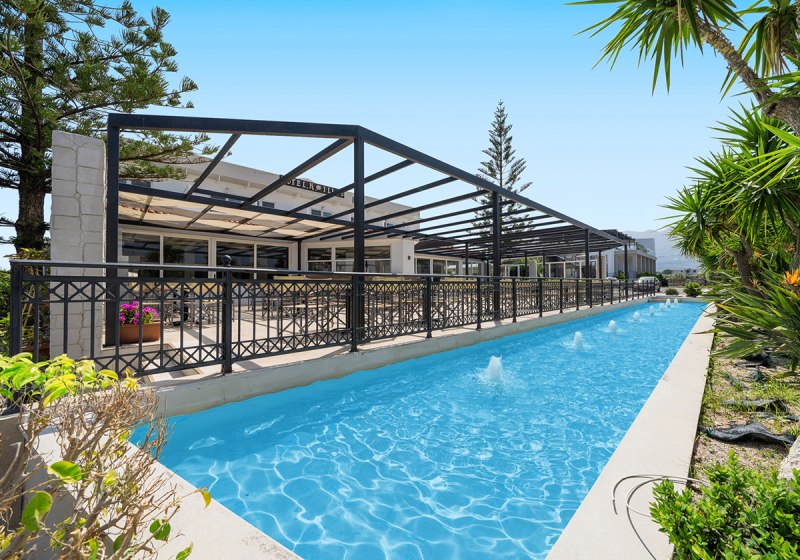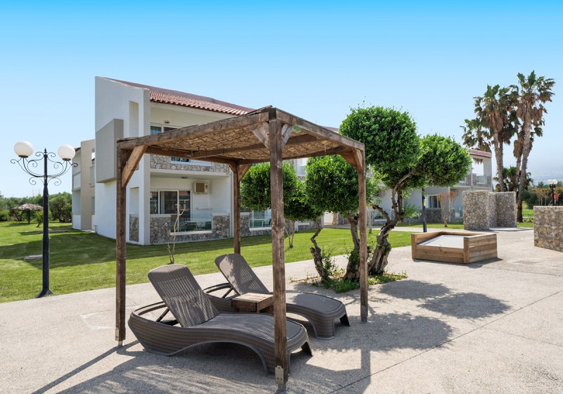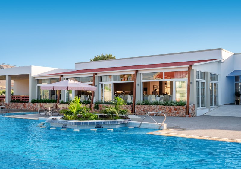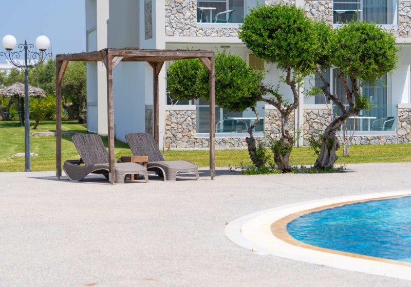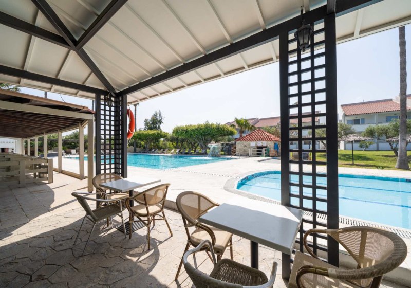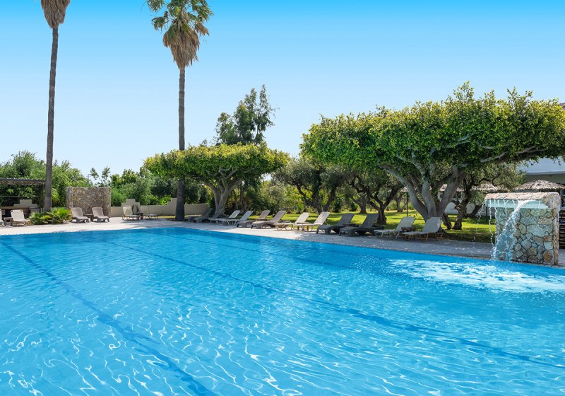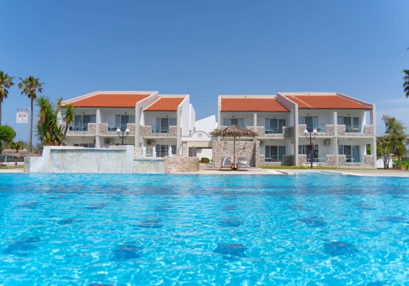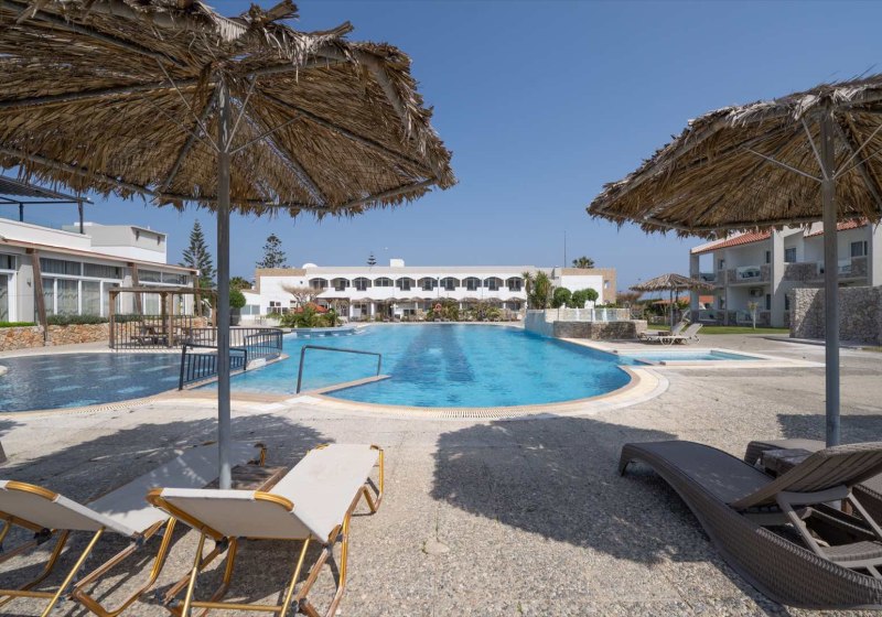 Im Ilios K Village Resort wohnt Ihr in einer weitläufigen Anlage mit gepflegtem Garten, zwei Außenpools und ruhigen Ecken zum Zurückziehen. Die Atmosphäre ist entspannt, familienfreundlich und klar strukturiert. Mit Rooftopbar, Lobbybar und Poolbar wählt Ihr Euren Lieblingsplatz zwischen Weitblick, Schatten und Wassernähe. Live‑Musik und ein Animationsprogramm setzen dezente Akzente, ohne die erholsame Grundstimmung zu stören.