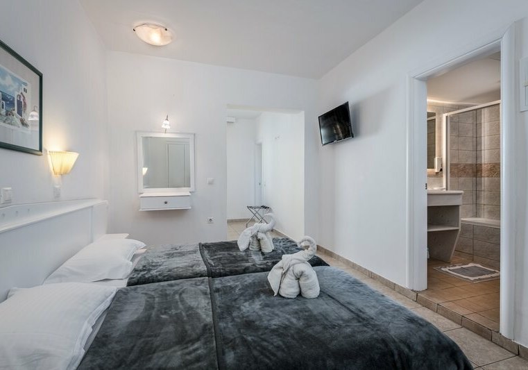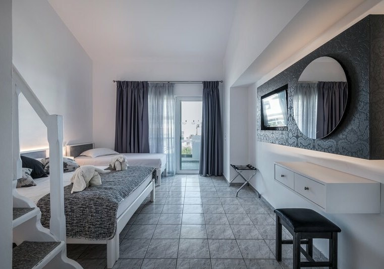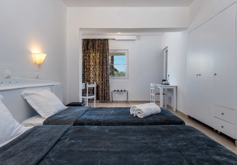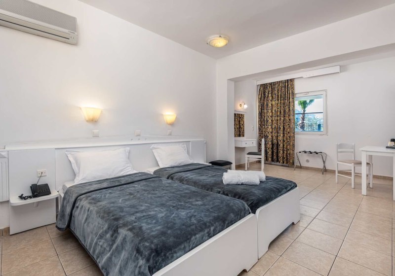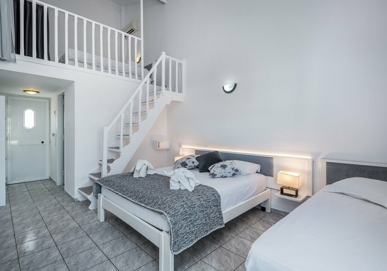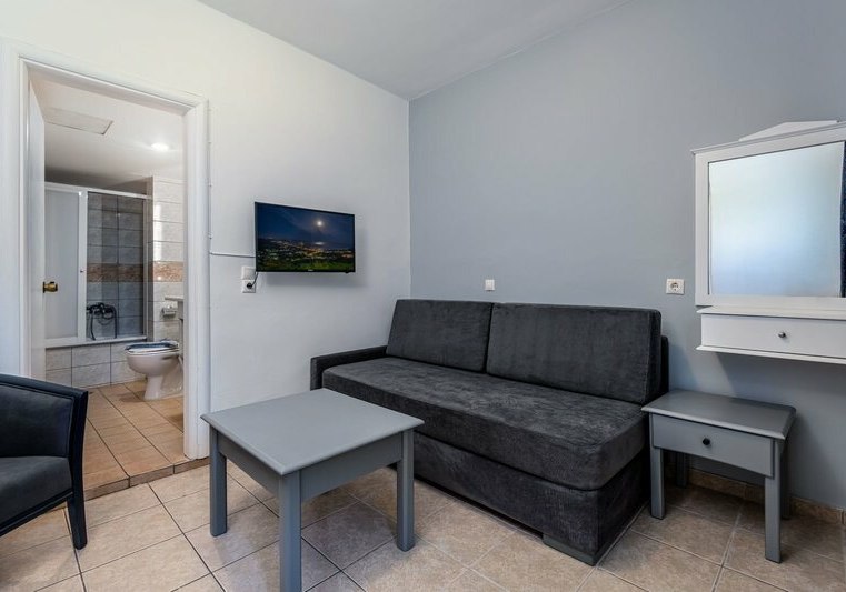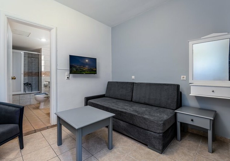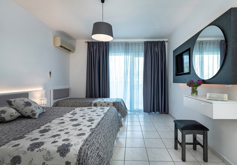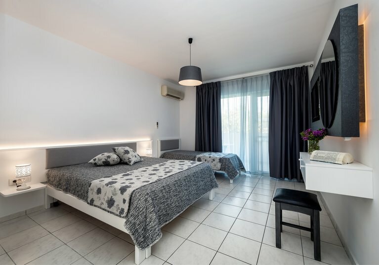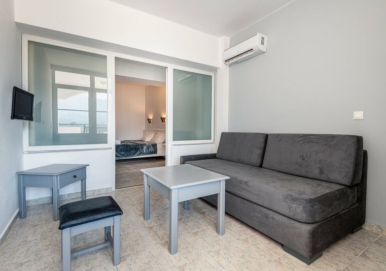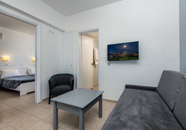 Ihr wohnt in Doppelzimmern, Familienzimmern mit separatem Schlafzimmer, Suiten mit separatem Wohnraum oder in Maisonetten mit Schlafbereich oben. Alle Einheiten verfügen über Balkon oder Terrasse, Klimaanlage, Sat‑TV, Safe, Telefon, Bad/WC und Föhn. Kaffee‑/Teezubereiter und Wasserkocher sind vorhanden, ebenso WiFi, Fliesenboden und Schallisolation.