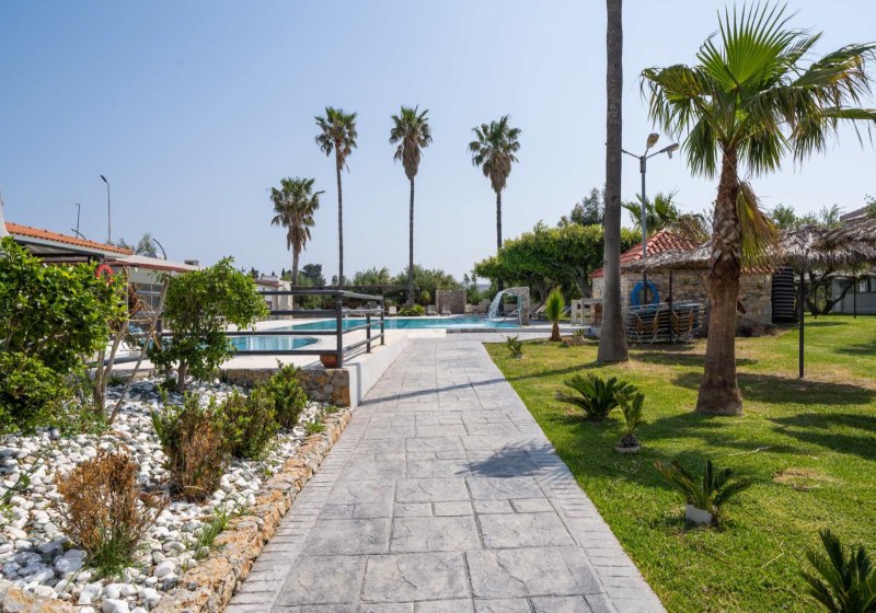 Ihr wohnt in Tigaki auf Kos, etwa 950 Meter vom Sandstrand und dem Ortskern entfernt. Ein Hotelbus verbindet Anlage und Strand, eine Bushaltestelle liegt rund 150 Meter entfernt. So bleibt Ihr flexibel zwischen Strandgang, Dorfbummel und Ausflügen, ohne auf das Auto angewiesen zu sein. Wer gern zu Fuß unterwegs ist, erreicht vieles in angenehmer Distanz.