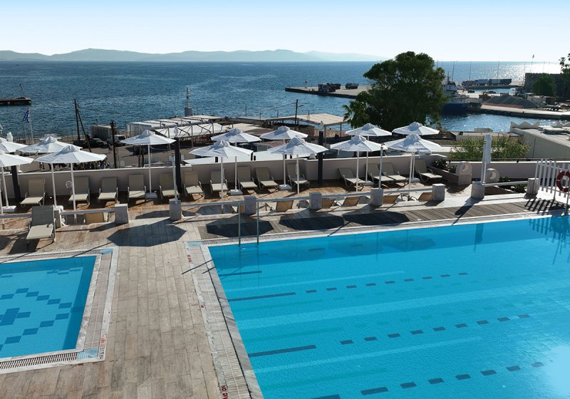 Kosta Palace City Hotel verbindet Hafenlage mit städtischer Nähe und kurzen Wegen. Der Dachterrassenpool, WLAN inklusive und die klare Zimmerausstattung schaffen Struktur im Tag. Frühstücksbuffet, Bar und Poolbar halten Euch nah am Geschehen, während Zimmer mit Hafenblick und Apartments unterschiedlichste Bedürfnisse abdecken.