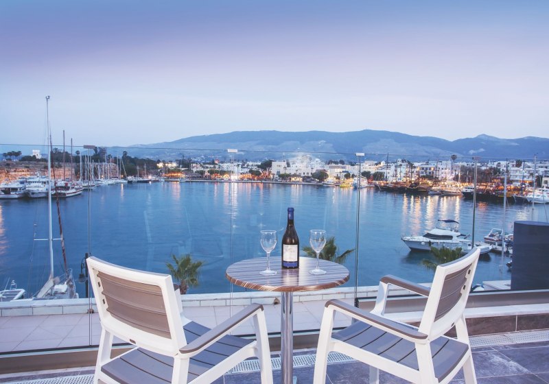 Ihr wählt zwischen klassischem Zimmer und Apartment. Zur Ausstattung zählen individuell regulierbare Klimaanlage, WLAN, Safe, Sat-TV, Telefon, Föhn sowie Kühlschrank. Bad oder Dusche mit WC, dazu Balkon oder Terrasse runden den Rückzugsort ab. Zimmer mit Hafenblick sind buchbar und setzen die Szenerie eindrucksvoll in Szene.
