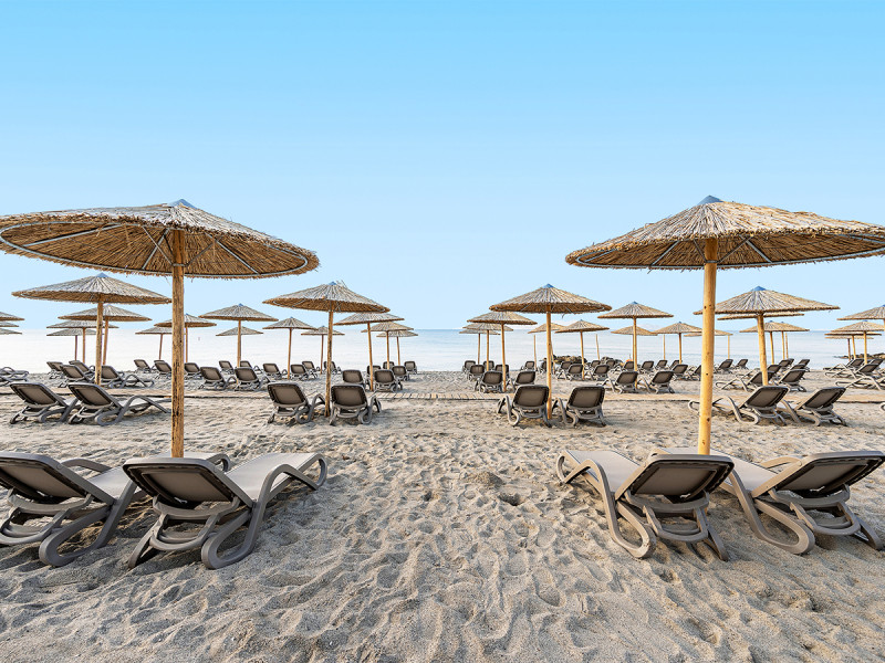 Strand• Strand (direkt, sanft abfallend, sandig) • Liegestühle • Sonnenschirme • Strandbar