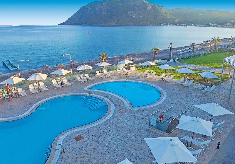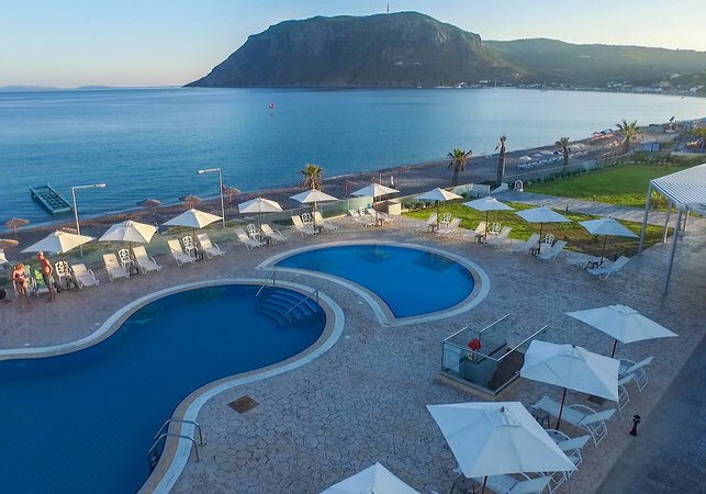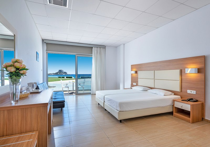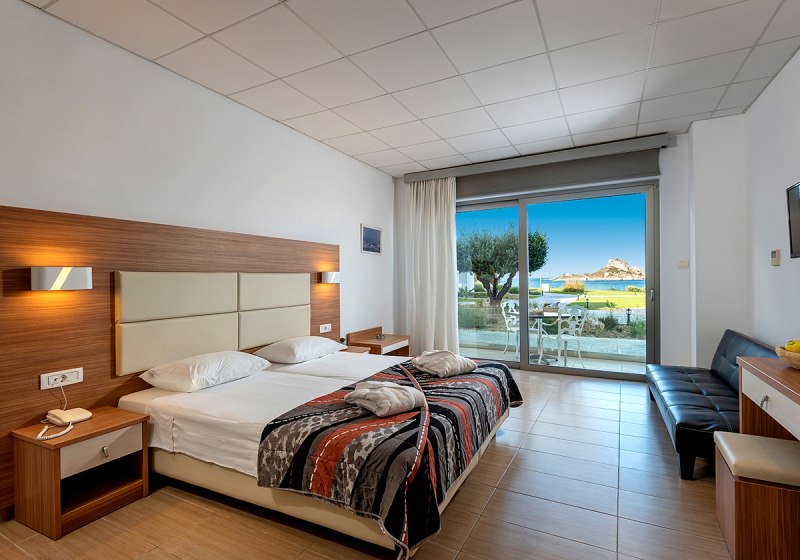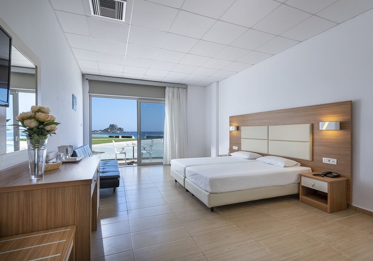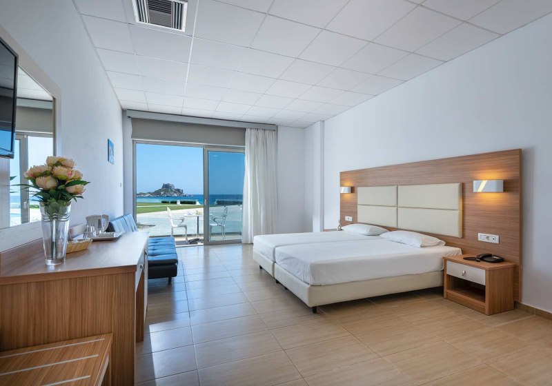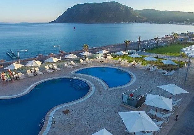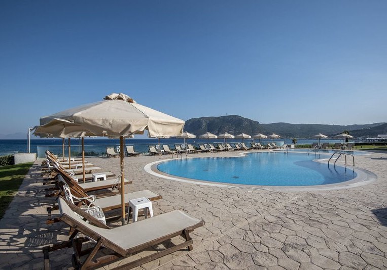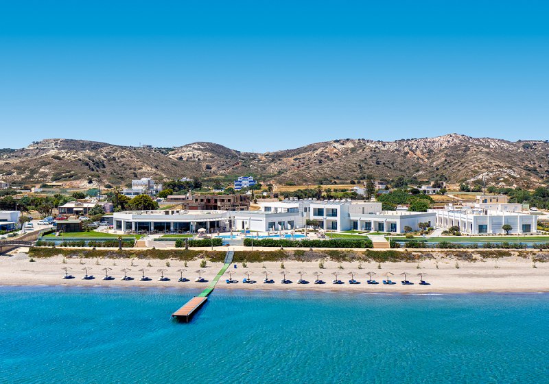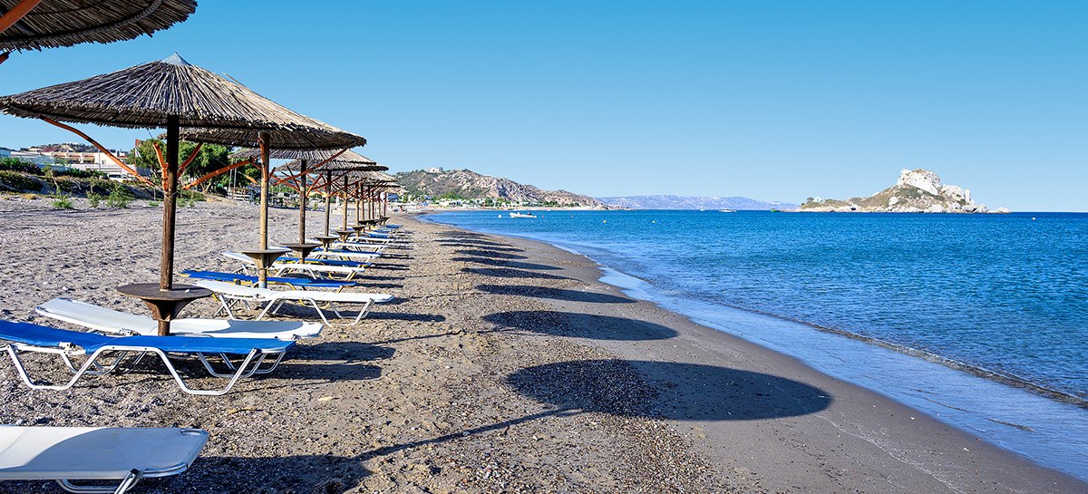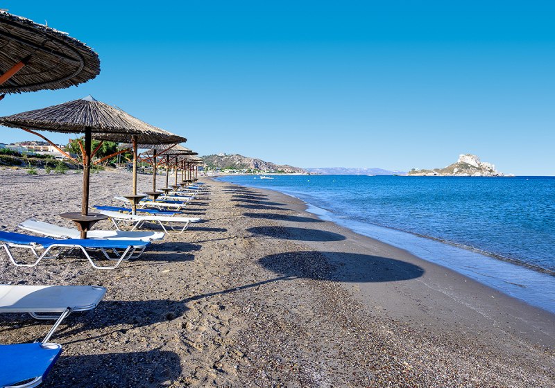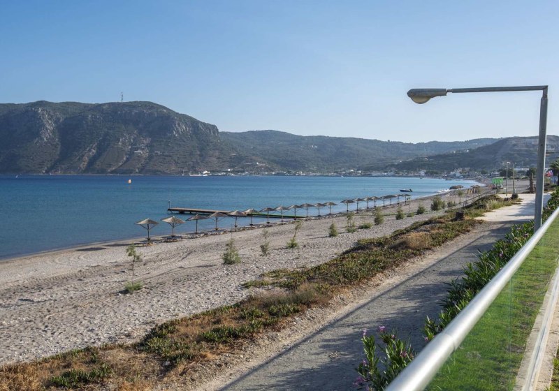Die Lage ist klar definiert: direkt am Strand, mit privatem Abschnitt und kurzen Wegen in den Ort. Bars und Restaurants erreicht Ihr nach 50 Metern, die Bushaltestelle liegt nur 20 Meter entfernt. Der Flughafen Kos (KGS) befindet sich in rund 15 Kilometern Entfernung, bequem per Transfer oder Mietwagen erreichbar.