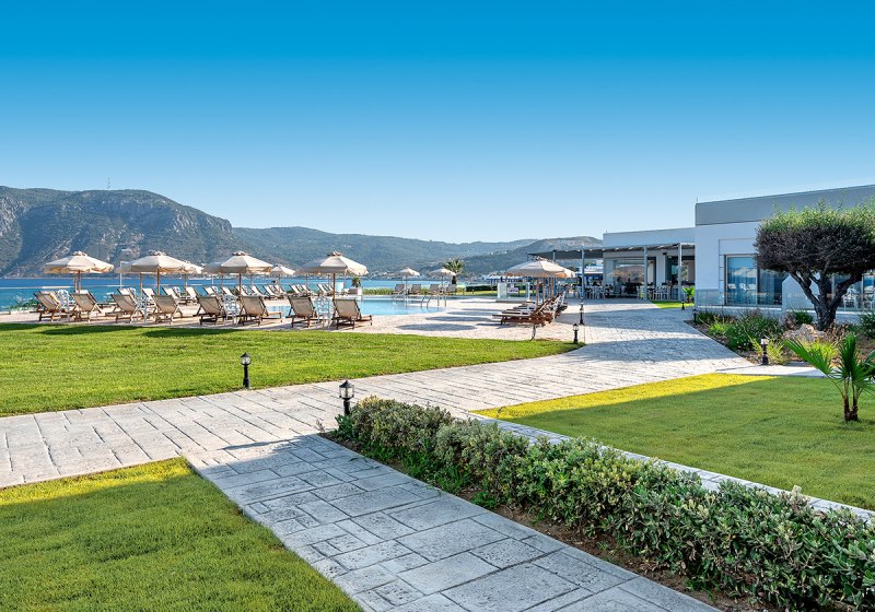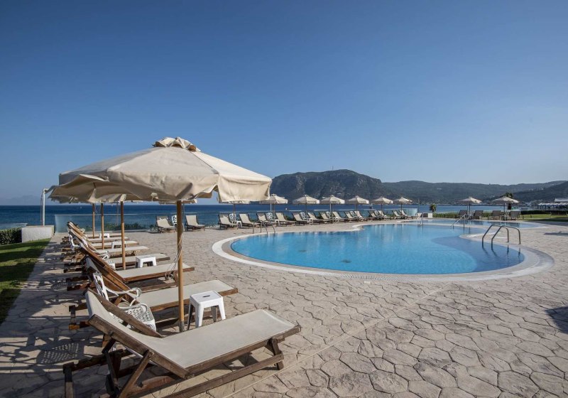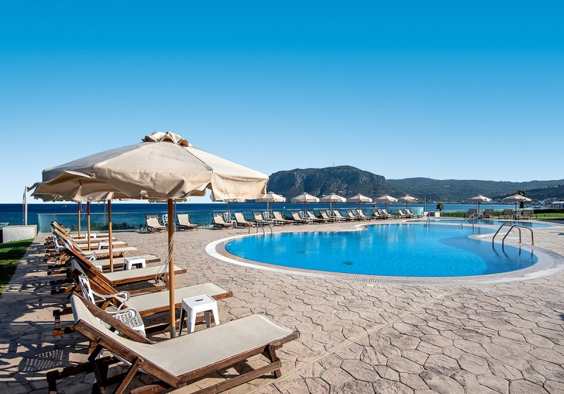 - Direktlage Strand: Privater Abschnitt direkt am Sand- und Kiesstrand von Kos.
