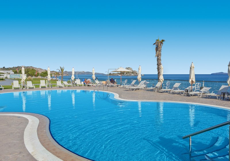Im Royal Bay Suites wohnt Ihr direkt am Sand- und Kiesstrand von Kos, mit eigenem Strandabschnitt und kurzen Wegen zu Bars und Restaurants. Die Anlage ist überschaubar: 46 Zimmer verteilen sich auf ein Haupt- und zwei Nebengebäude. Ein Süßwasser-Außenpool, Kinderbecken und Spielplatz sorgen für entspannte Tage am Meer.