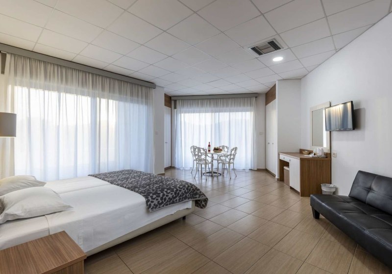 Buchbar sind Varianten mit Gartenblick, seitlichem Meerblick oder direktem Meerblick. Babybetten erhaltet Ihr auf Anfrage kostenfrei; Zustellbetten stehen begrenzt zur Verfügung. Einige Einheiten bieten getrennte Schlafzimmer oder Schlafsofa – praktisch für Familien, die kurze Wege und klare Strukturen schätzen.