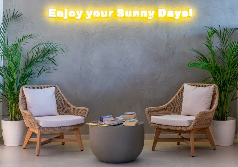 Im Sunny Days Hotel & Apartments wohnt Ihr in einer überschaubaren Anlage mit 86 Zimmern, verteilt auf ein Haupthaus und Nebengebäude mit zwei Etagen. Der gepflegte Garten, die sonnige Poolzone und kurze Wege prägen den Rhythmus Eurer Tage. WLAN nutzt Ihr in Lobby, Zimmern, Restaurant und am Pool inklusive – unkompliziert und schnell.