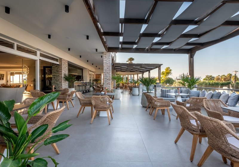 Die Anlage ist kompakt, gut strukturiert und funktional ausgestattet: klimatisierte Rezeption und Lobby, Garten, Swimmingpool sowie Sonnenterrasse mit Liegen und Schirmen. WLAN ist inklusive – in Lobby, Zimmern, Restaurant und am Pool. Für Wege und Ausflüge nutzt Ihr Mietwagenverleih, Fahrradverleih, Tour-Desk oder den hoteleigenen Shuttleservice.