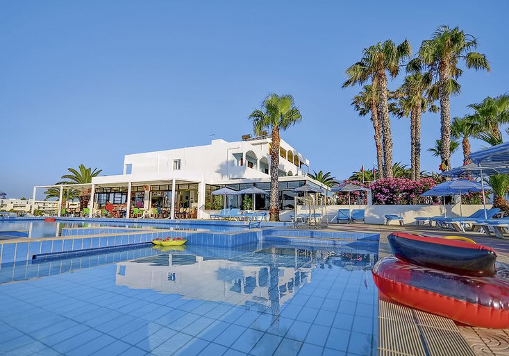 Im Tropical Sol erlebt Ihr Tigaki entspannt und nah am Geschehen. Die Anlage wirkt überschaubar und angenehm klar strukturiert: ein gepflegter Garten, sonnige Terrassenflächen und ein Süßwasserpool mit separatem Kinderbecken bilden den Mittelpunkt. Die Lobby mit 24‑h‑Rezeption und Sitzecken schafft einen verlässlichen Anlaufpunkt in den Ferien, während Ihr dank WLAN in der gesamten Anlage stets verbunden bleibt. Highlight: Kompakte Anlage mit Garten, Pool und 24‑h‑Rezeption für flexible Tage.