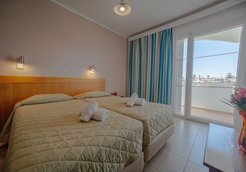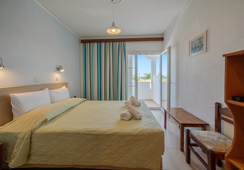 Die Zimmer sind etwa 19 Quadratmeter groß und funktional ausgestattet: Klimaanlage, WLAN inklusive, Sat‑TV, Telefon und Radio strukturieren den Tageslauf, ein Minikühlschrank hält Getränke kühl. Dusche/WC, Föhn und Kosmetikspiegel sorgen für Klarheit im Bad. Ein Balkon erweitert den Raum ins Freie. Highlight: Durchdachte Grundausstattung, kompaktes Format und eigener Balkon.