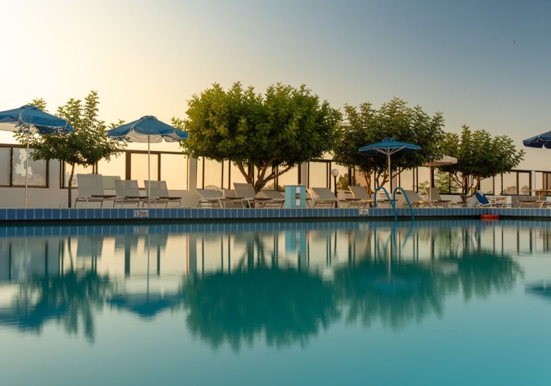 - Rund ums Haus: 24‑h‑Rezeption, WLAN inklusive und Poolliegen mit Schirmen.