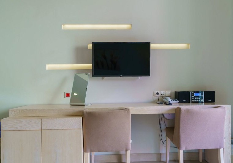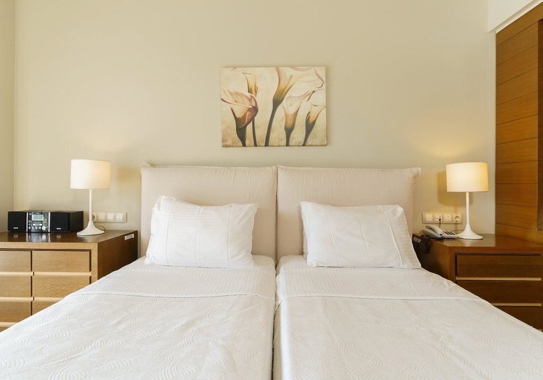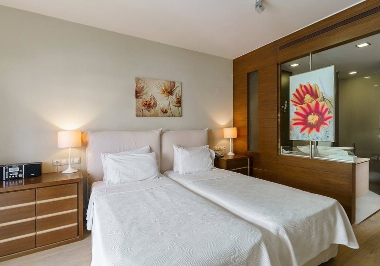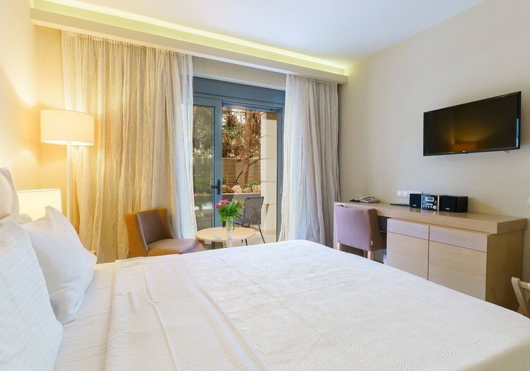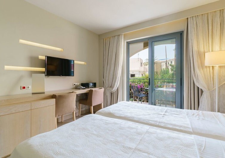 Die 112 Zimmer verteilen sich auf zwei Gebäude und bieten Balkon oder Terrasse, Bad oder Dusche/WC, Föhn, Bademäntel und Slipper. Klimaanlage/Heizung, Sat‑TV, Telefon, WLAN, Safe sowie Mini‑Kühlschrank, Kaffee‑/Teezubereiter und Nespresso‑Maschine sind an Bord – durchdacht für ruhige Abende und einen strukturierten Start in den Tag.