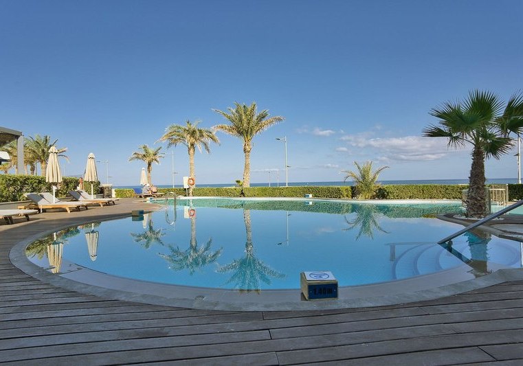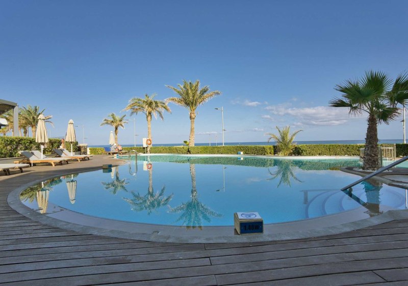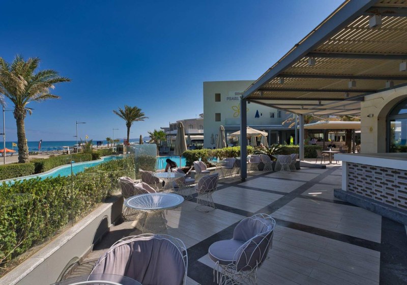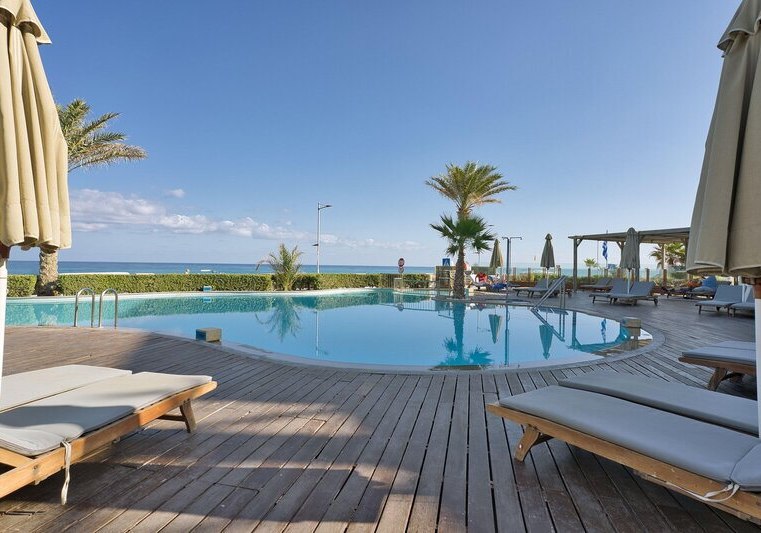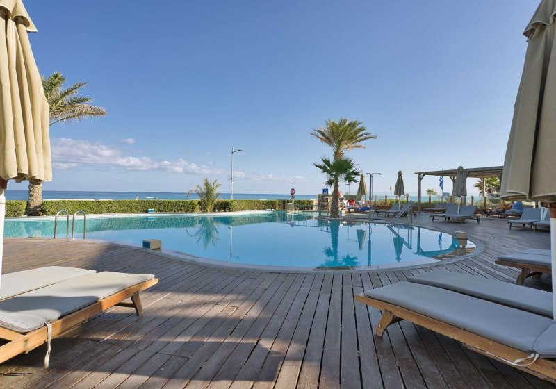 Im Aegean Pearl wohnt Ihr in einem Strandhotel, das Euch mit klarer Struktur, ruhigen Linien und aufmerksamen Services empfängt. Die Küste liegt direkt gegenüber, nur durch eine Uferstraße getrennt. Zwei Außenpools, großzügige Sonnenterrassen und inklusive Liegen sowie Schirme am Pool und Strand schaffen entspannte Tage mit kurzen Wegen und unkomplizierter Organisation.
