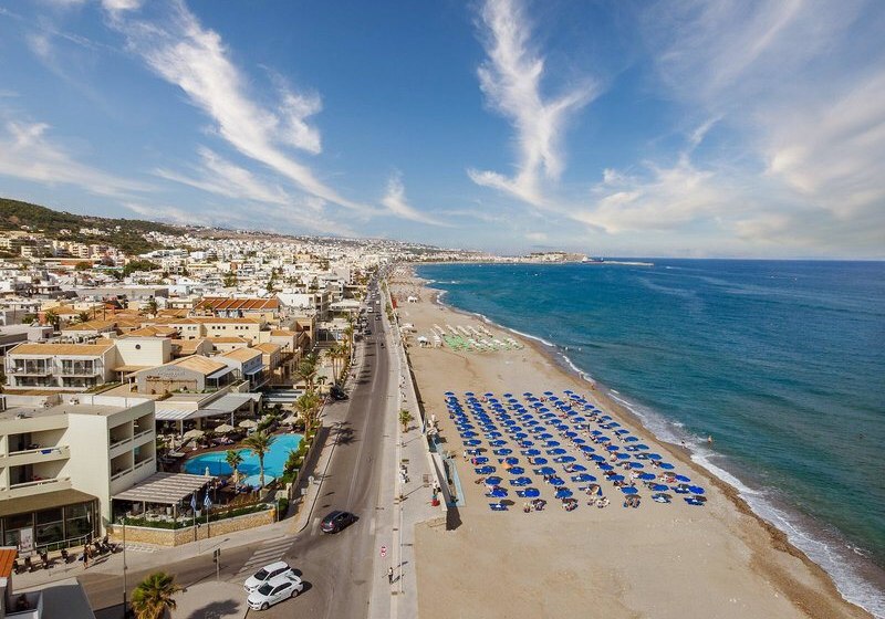 Ihr wohnt in Rethymnon auf Kreta, unmittelbar an der Küste; der mit Blauer Flagge ausgezeichnete Sand- und Kiesstrand liegt gegenüber, getrennt nur durch die Uferstraße. Das Ortszentrum erreicht Ihr nach etwa 2,2 Kilometern, Restaurants, Bars und Einkaufsmöglichkeiten liegen fußläufig wenige Minuten entfernt. So kombiniert Ihr Strandtage mit kurzen Abstechern in die lebendige Stadt.