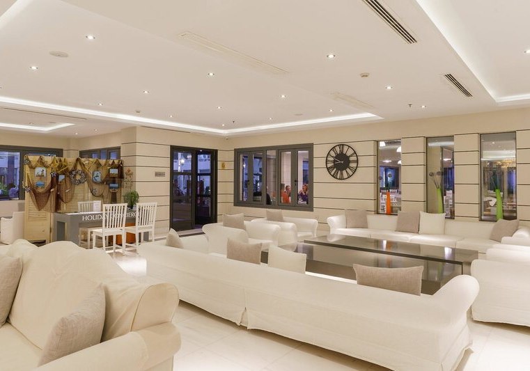 Das Haus bietet eine 24‑Stunden‑Rezeption, WLAN, Lounge, Lift und TV‑Raum sowie Shops inklusive Juwelier. Draußen warten zwei Pools, Kinderbecken und eine großzügige Sonnenterrasse. Liegen, Schirme und Badetücher sind an Pool und Strand inklusive – ein durchdachtes Plus für alle, die leicht reisen.