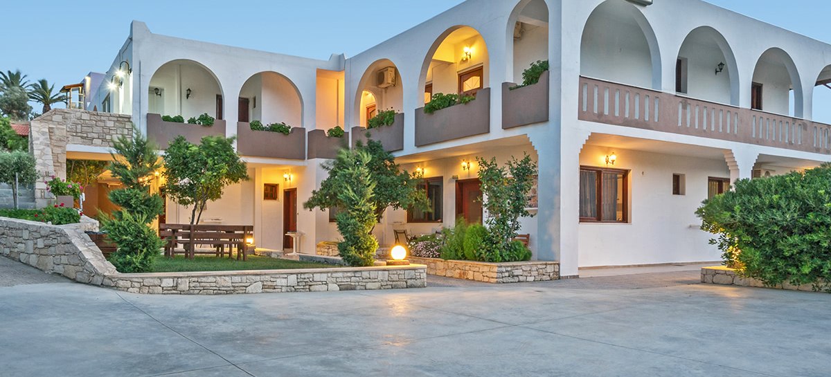 Plakias auf Kreta liefert Euch die Kulisse für kurze Wege ans Meer: Vom Hotel sind es rund 20 Meter bis zum Sandstrand. Eine Bushaltestelle liegt etwa 100 Meter entfernt, was für Ausflüge in die Umgebung eine praktische Anbindung bedeutet. Für die Anreise bieten sich zwei Flughäfen an: Chania in rund 95 Kilometern und Heraklion in etwa 114 Kilometern Entfernung.