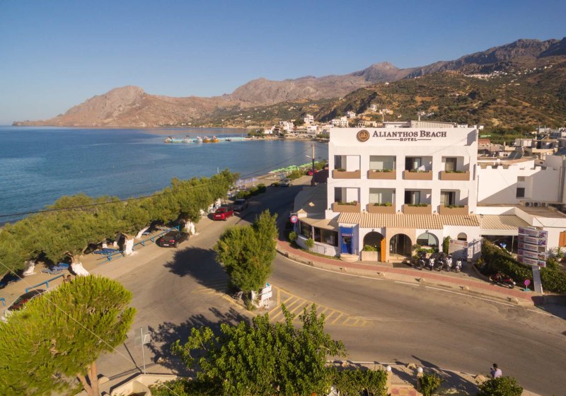 Im Alianthos Beach wohnt Ihr nah am Wasser: Nur 20 Meter trennen Euch vom Sandstrand von Plakias. Zwei zweistöckige Gebäude mit insgesamt 35 Zimmern bilden einen kompakten Rückzugsort, in dem Ihr zwischen Strandmomenten, Poolpausen und kurzen Wegen entspannt wechselt. Die öffentlichen Bereiche sind übersichtlich organisiert, mit Rezeption, Aufenthaltszonen und verlässlichem WLAN in allen Bereichen sowie in den Zimmern.
