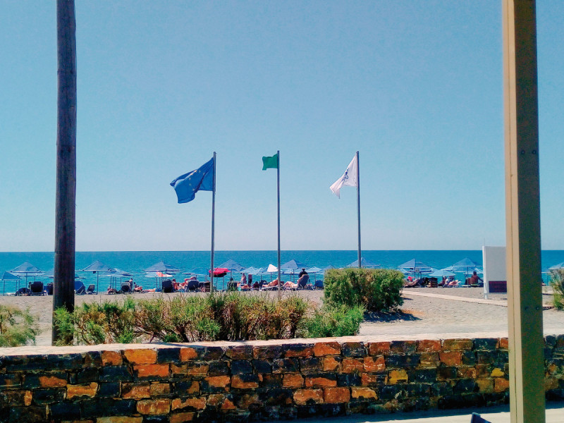 Ihr residiert an der Südküste Kretas, direkt am Long Beach. Die Blaue Flagge und der 5 km lange Sand‑/Kiesabschnitt geben Euren Tagen verlässliche Struktur zwischen Baden, Spazieren und Ausblick. Rund 9 km trennen Euch von Ierapetra, eine Bushaltestelle liegt in der Nähe, der Flughafen Heraklion ist etwa 100 km entfernt.