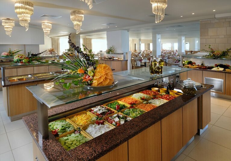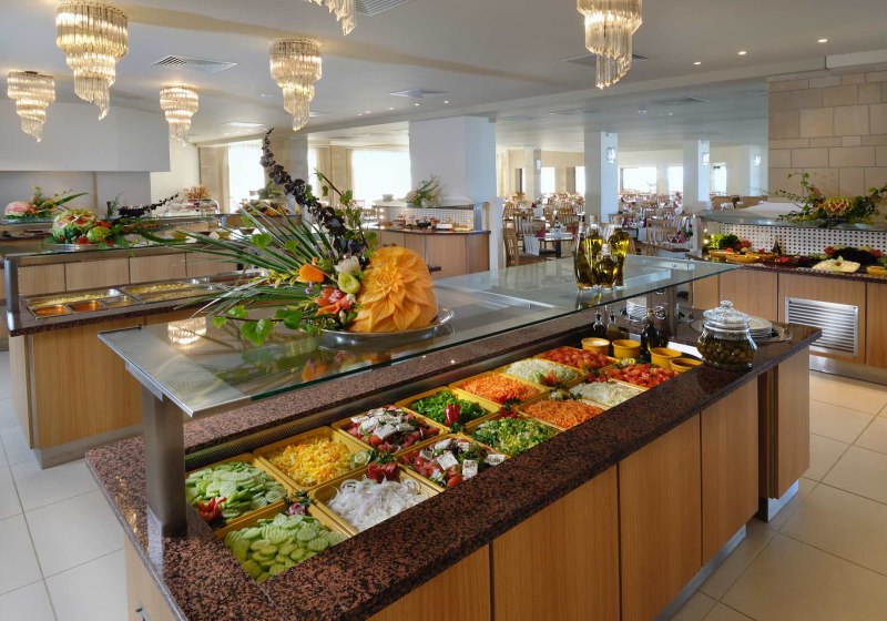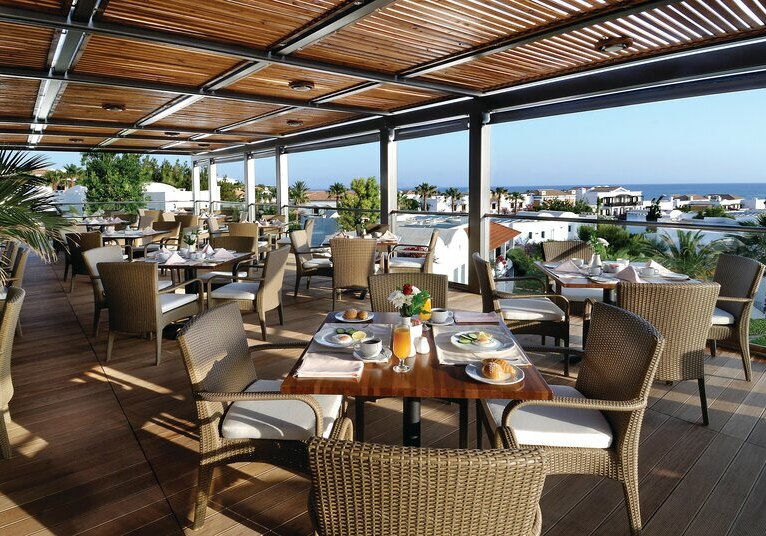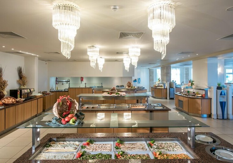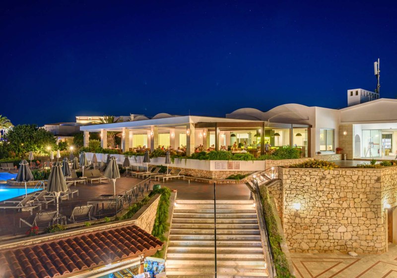 Die Gastronomie spannt den Bogen vom Hauptrestaurant Ambrosia über eine Taverne bis zu Snack‑ und Beach‑Bars – von früh bis spät begleitet von All‑Inclusive oder Halbpension. Live‑Kochen und eine große Auswahl an vegetarischen, veganen und gluten‑ sowie laktosefreien Speisen geben Eurem Tag Struktur und Geschmack.