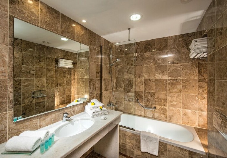 In der eleganten Lobby mit 24‑h‑Rezeption startet Ihr entspannt in den Tag, später locken Pool‑ und Beach‑Bars sowie schattige Plätze unter Sonnenschirmen. Familien freuen sich über Miniclub, Spielplatz und Kinderbecken; Aktivfans steuern Tennisplätze, Fitnessraum oder Wassersport am Strand an. Highlight: Direktlage am Strand erleichtert kurze Wege zwischen Meer, Pool und Bars.