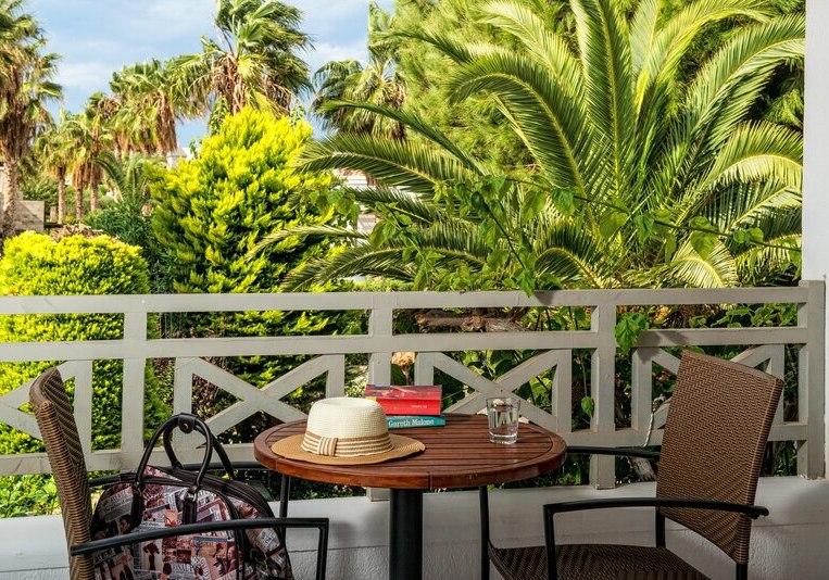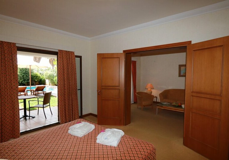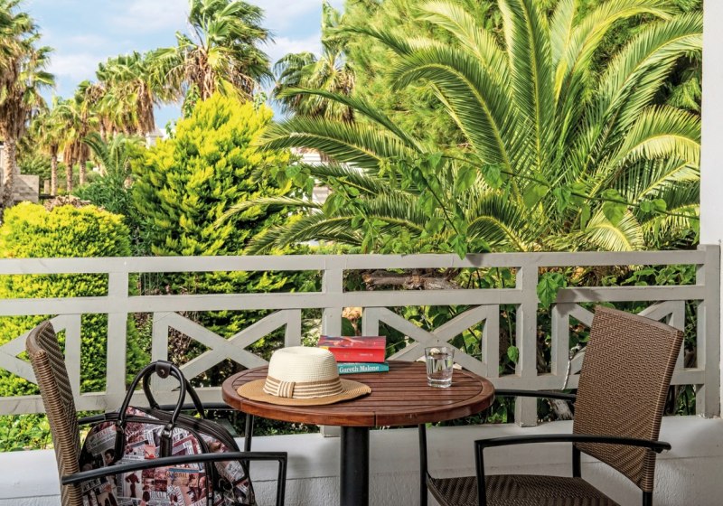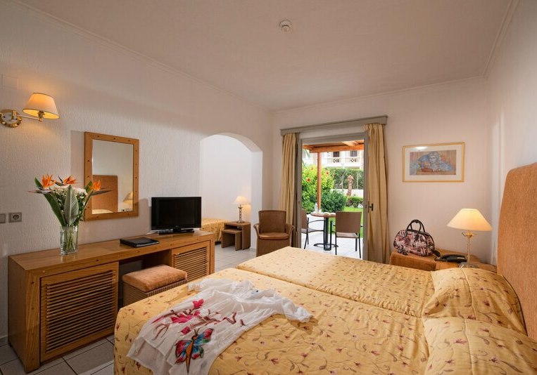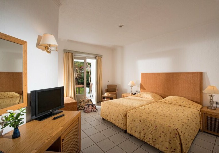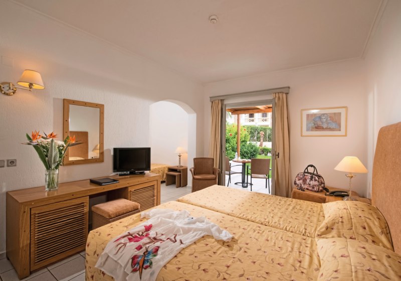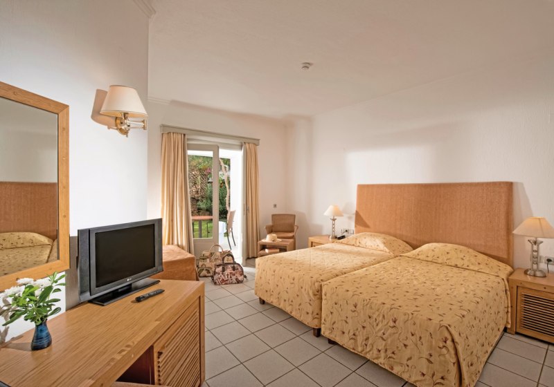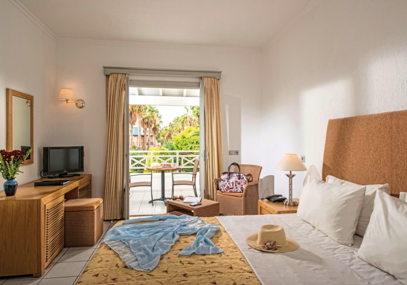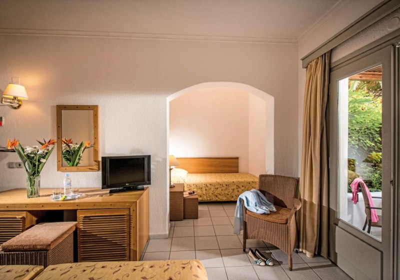 Die Zimmer verbinden klare Funktion mit Rückzugsqualität: individuell regulierbare Klimaanlage, Safe, Sat‑TV, Telefon, Kühlschrank und Bad mit Dusche oder Wanne. Balkon oder Terrasse öffnen den Blick in Gärten oder Richtung Strand, Fliesenböden sorgen für angenehme Kühle. WLAN ist vorgesehen, ebenso Außenmöbel für entspannte Stunden. Highlight: Balkon oder Terrasse erweitern den Wohnraum spürbar.