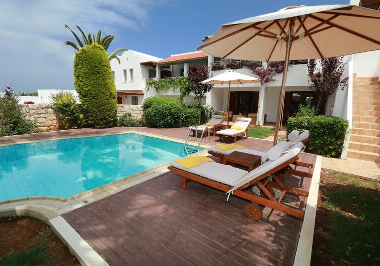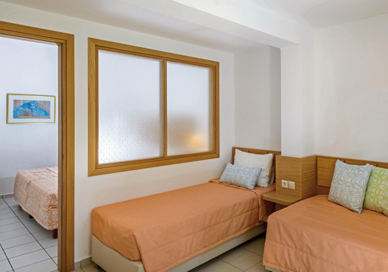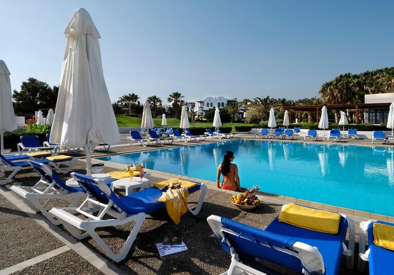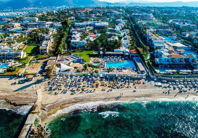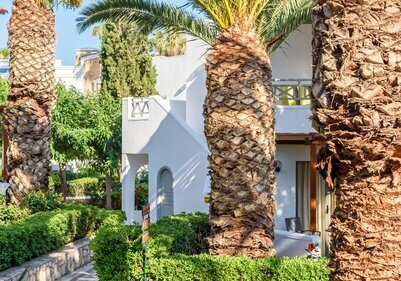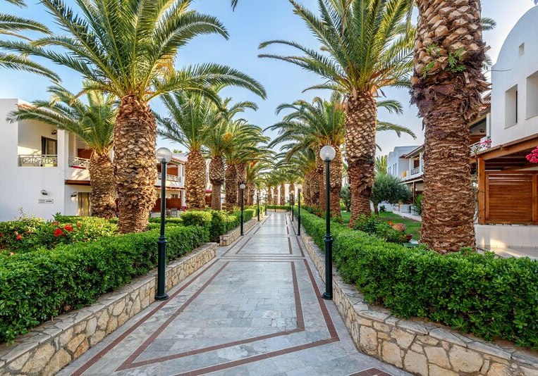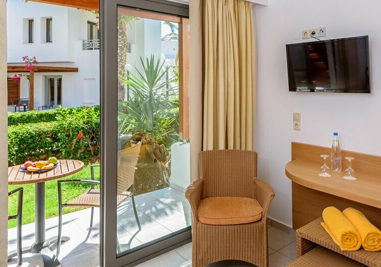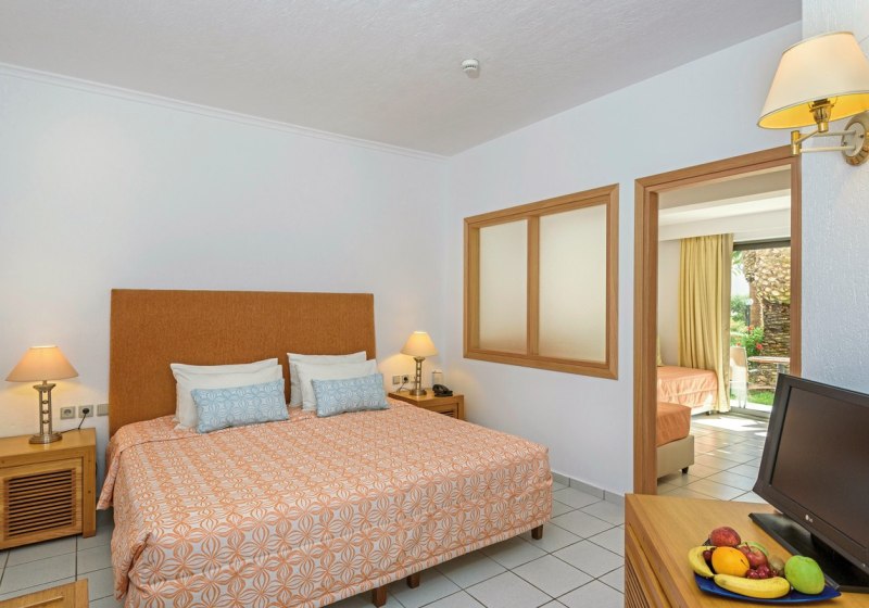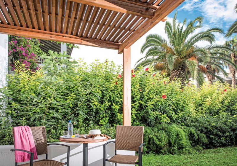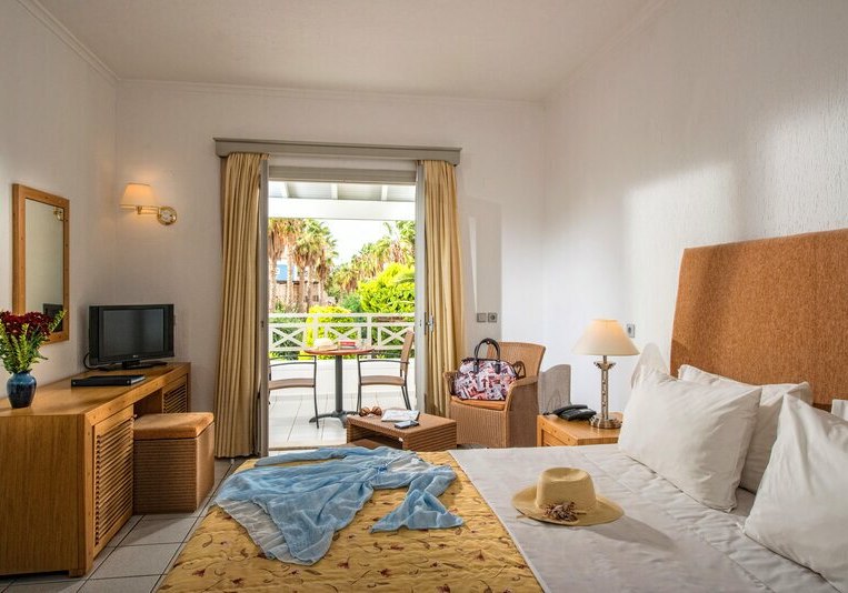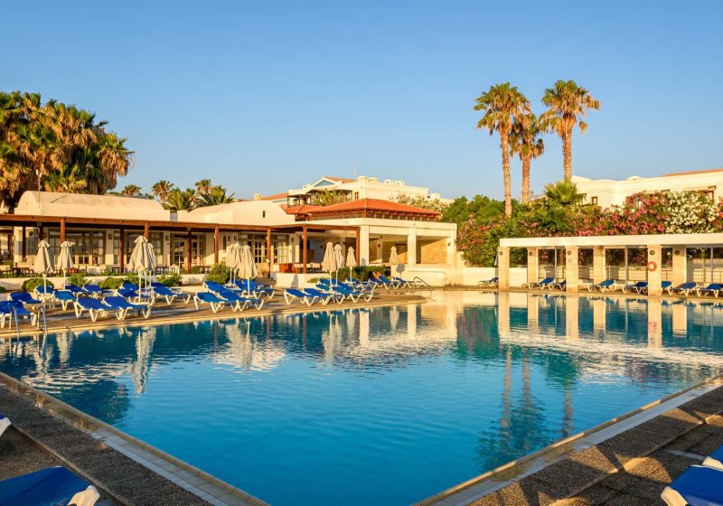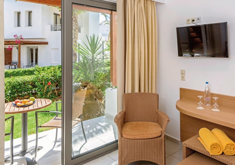 Die Umgebung wirkt ruhig, ideal für geradlinige Strandtage. Gleichzeitig bleibt Ihr flexibel, denn mit öffentlichem Bus, Mietwagen oder kurzem Transfer erreicht Ihr Ausflugsziele und benachbarte Orte. Das Resort selbst ist so angelegt, dass Ihr binnen Minuten vom Zimmer zu Pool, Strand oder Taverne gelangt.