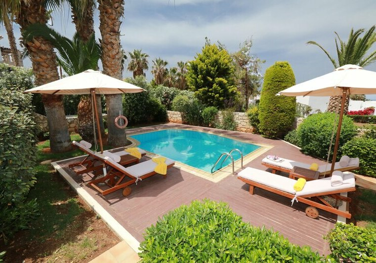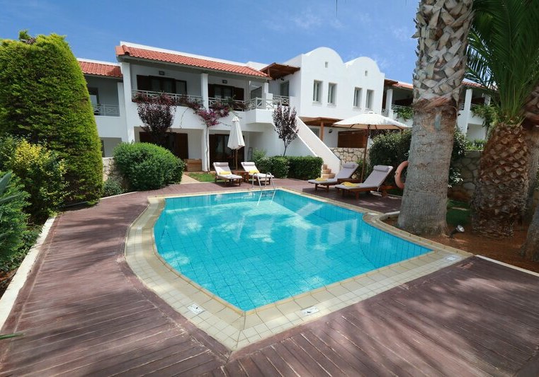 Zum Flughafen Heraklion sind es ungefähr 25 km. Wer Club‑ oder Nachtleben sucht, findet einen Disco‑Club in etwa 2,5 km Entfernung. Golfer orientieren sich am rund 5 km entfernten Platz. Am Strand warten Liegestühle, Sonnenschirme und eine Beach‑Bar, ebenso Umkleidekabinen für einen unkomplizierten Tag am Wasser.