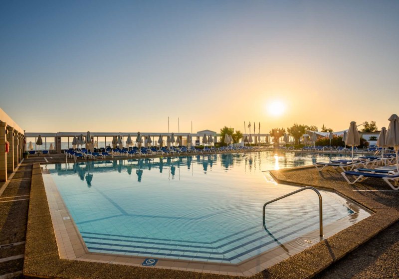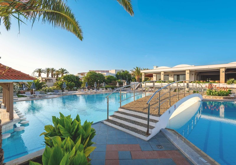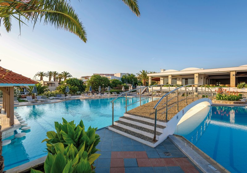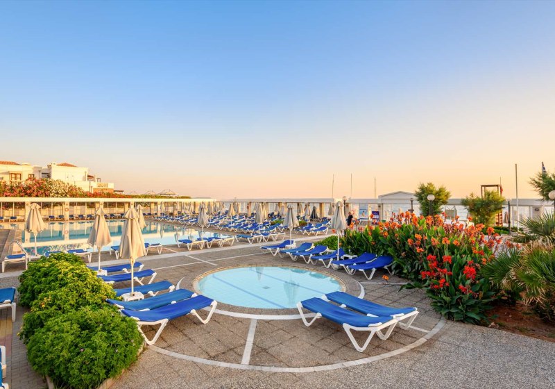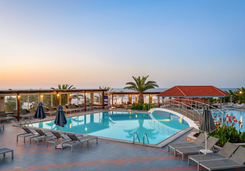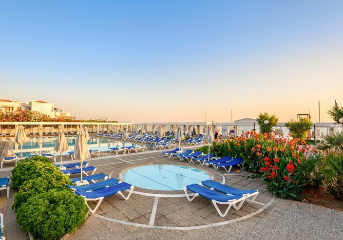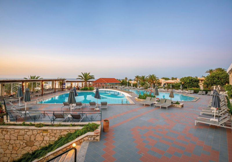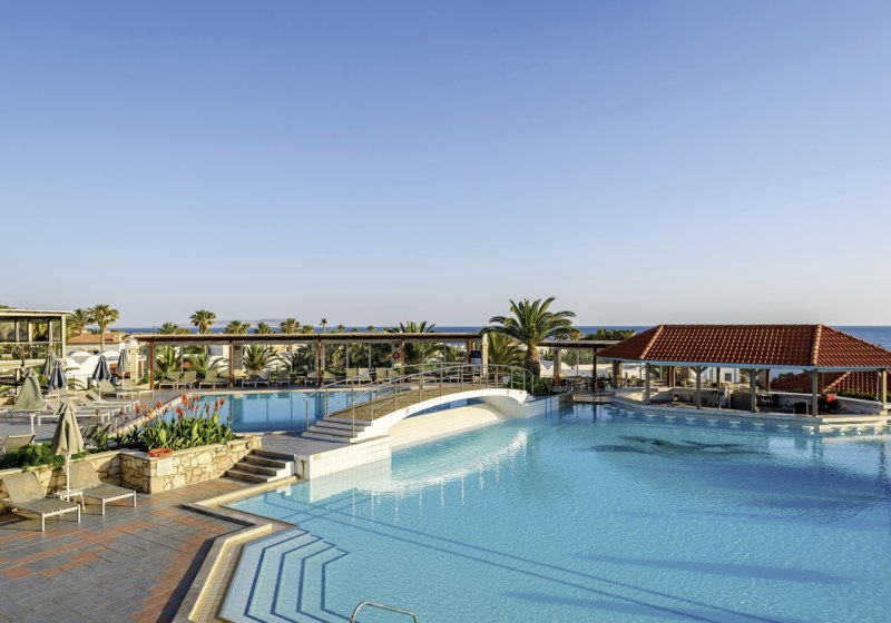 Annabelle Beach Resort empfängt Euch in Anissaras direkt am Sand‑Kiesstrand, mit dem ruhigen Takt einer weitläufigen Bungalowanlage und liebevoll gestalteten Wegen zwischen Gärten, Pools und Terrassen. Ihr bewegt Euch mühelos zwischen Strand, Ruhepool und lebendigen Bereichen und gestaltet Eure Tage flexibel – ganz so, wie es für Euch passt.