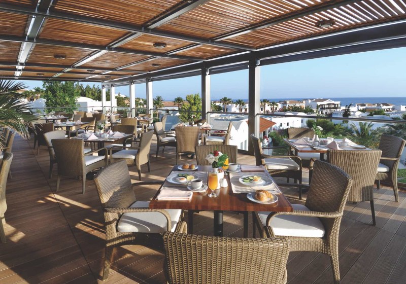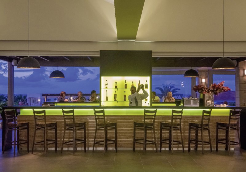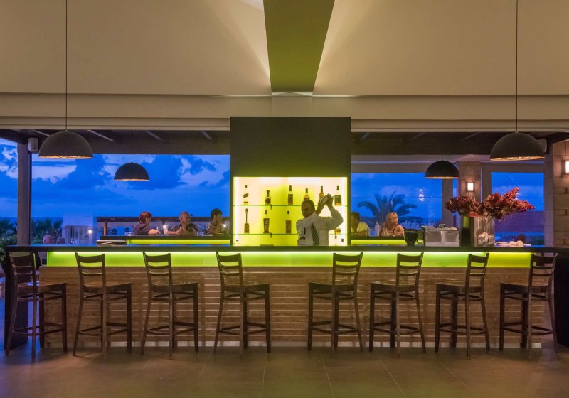 Im Hauptrestaurant Ambrosia startet Ihr mit Frühstück und Live‑Kochen, mittags und abends folgen Buffets mit klarer Struktur. In der Taverne wechselt Ihr die Szenerie, dazu kommen Pool‑/Snack‑Bar, Lobby‑ und Beach‑Bar für kurze Stopps oder Sundowner. Highlight: Mehrere Bar‑Points verteilen Genussmomente über den ganzen Tag.