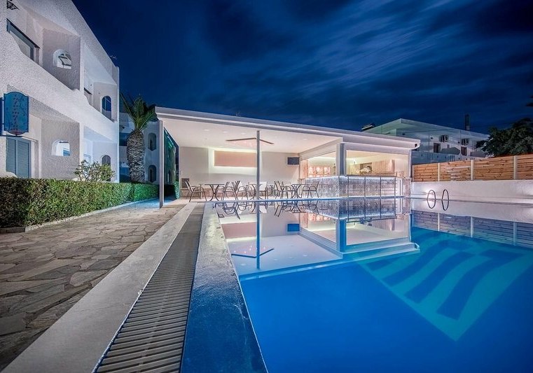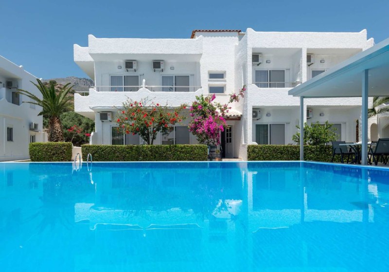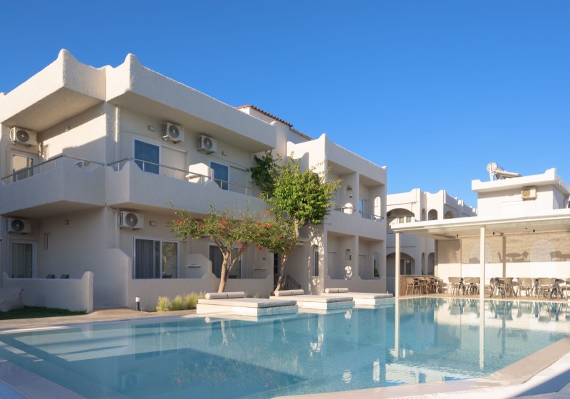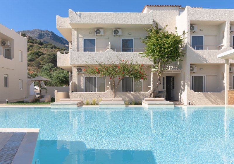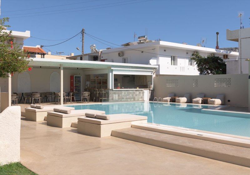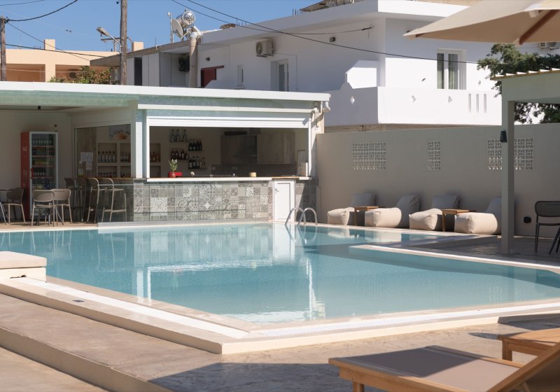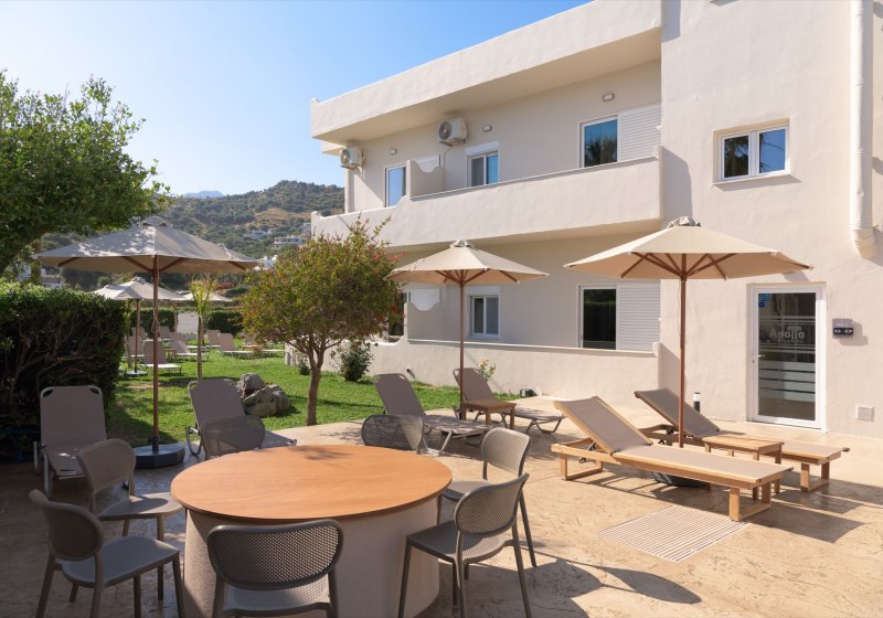 Apollo Plakias empfängt Euch in Plakias auf Kreta mit einer klaren, entspannten Atmosphäre und kurzen Wegen. Der Außenpool mit Sonnenschirmen und Liegen lädt zu ruhigen Stunden ein, während Ihr am Rand die Pool- und Snackbar in Reichweite habt. Kleine Haustiere sind auf Anfrage willkommen, was den Aufenthalt flexibel macht.